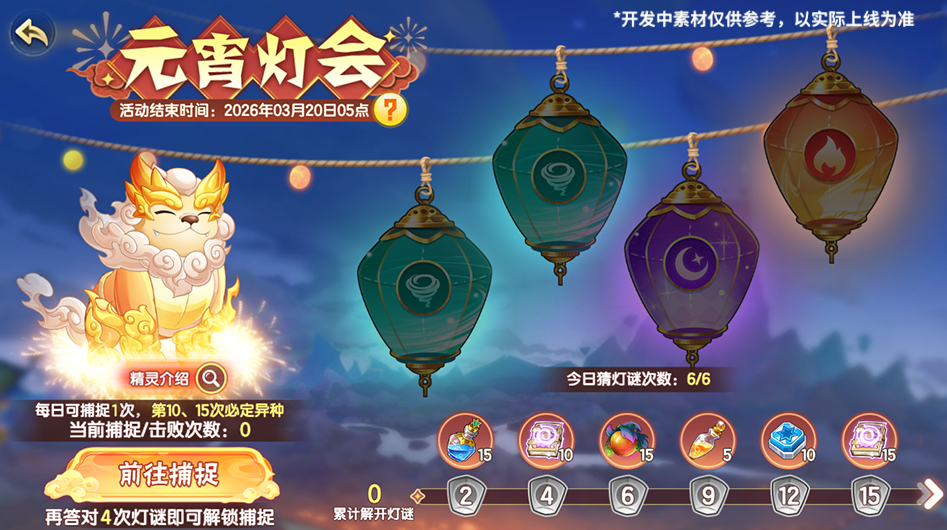 元宵佳节,花灯如昼,元宵灯会活动回归,累计解开一定数量的灯谜可获得对应的奖励!元宵专属精灵·焰火神也在西普大陆出没,答对一定数量的谜题后可前往捕捉精灵。