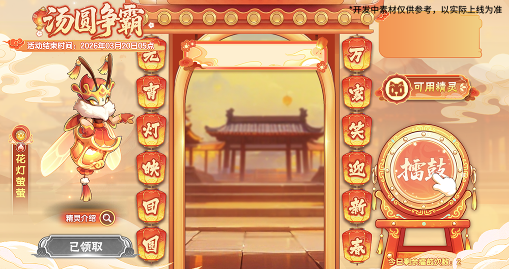 元宵佳节,汤圆争霸擂台赛开始啦!擂鼓并战胜前来的挑战者,点亮所有灯笼获得花灯萤萤的认可吧!战斗前吃下花灯萤萤精心准备的各种汤圆,还能获得意想不到的战斗增益哦~