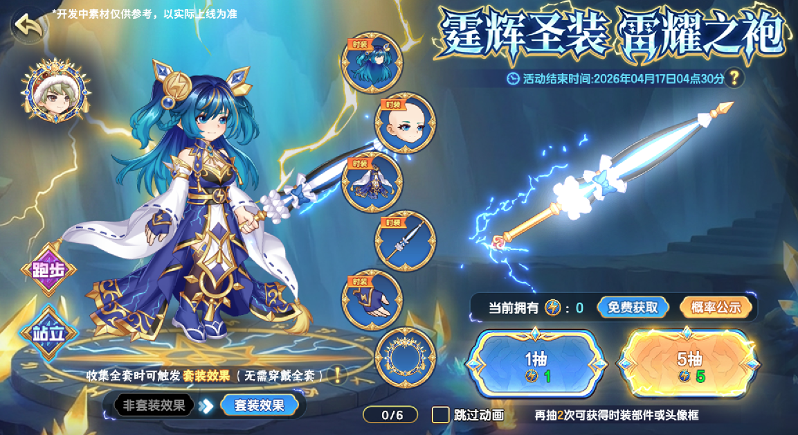 霆辉圣装,雷耀之袍!全新时装系列·霆辉圣装登场,小西普们可以使用道具·雷耀徽章进行抽取,参与小精灵战纪活动还可免费获得10个抽取道具·雷耀徽章。