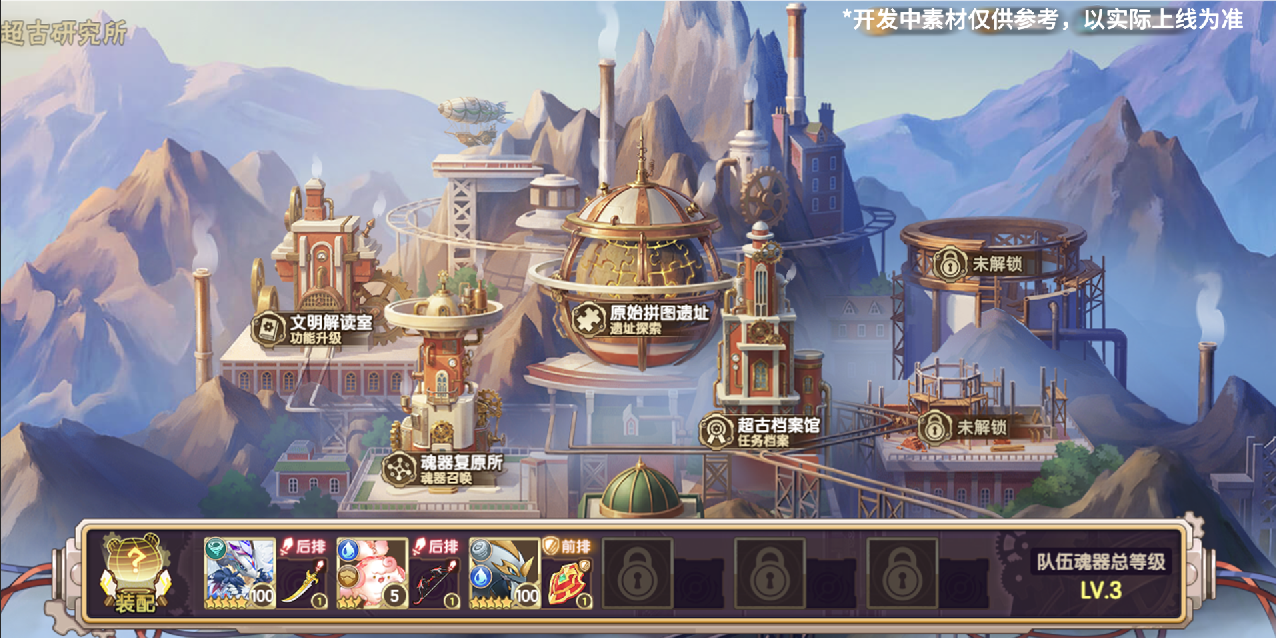 值得注意的是,在超古研究所内,现代的【圣灵】系统将暂时失效,战斗与探索的核心助力将完全由【魂器】系统承担,复原并持续强化魂器是深入更高难度空间的关键。探索过程中,小西普们将有机会直接获得霸主精灵、用特殊拼图捕捉眷属精灵、参与还有不同的事件,每一次深入都是一场风险与回报并存的博弈。