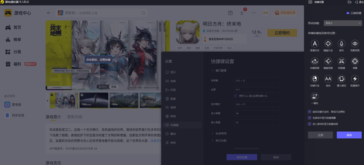 雷电模拟器支持键鼠映射功能,玩家可以把移动、技能释放等操作绑定到键盘和鼠标上。比如用WASD控制角色移动,鼠标点击部署干员,数字键释放技能,比手机触屏操作更精准,不会出现误触的情况。尤其是在紧张的战斗中,能快速反应,精准释放技能,提升通关效率。
