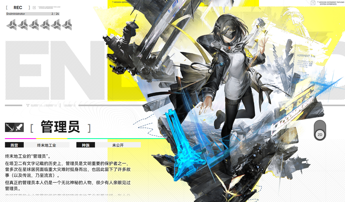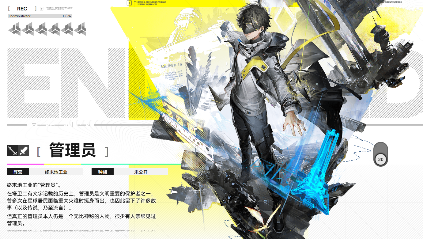 管理员是终末地工业的核心角色,玩家可选择男女性别,定位是近战战士,能用刀剑攻击敌人,男女角色的技能强度和动作完全一致。在剧情里,管理员是文明的保护者,多次在灾难中挺身而出,同时掌控着源石和协议网络的核心秘密,需要带领团队在塔卫二星球开拓未知、建设家园。