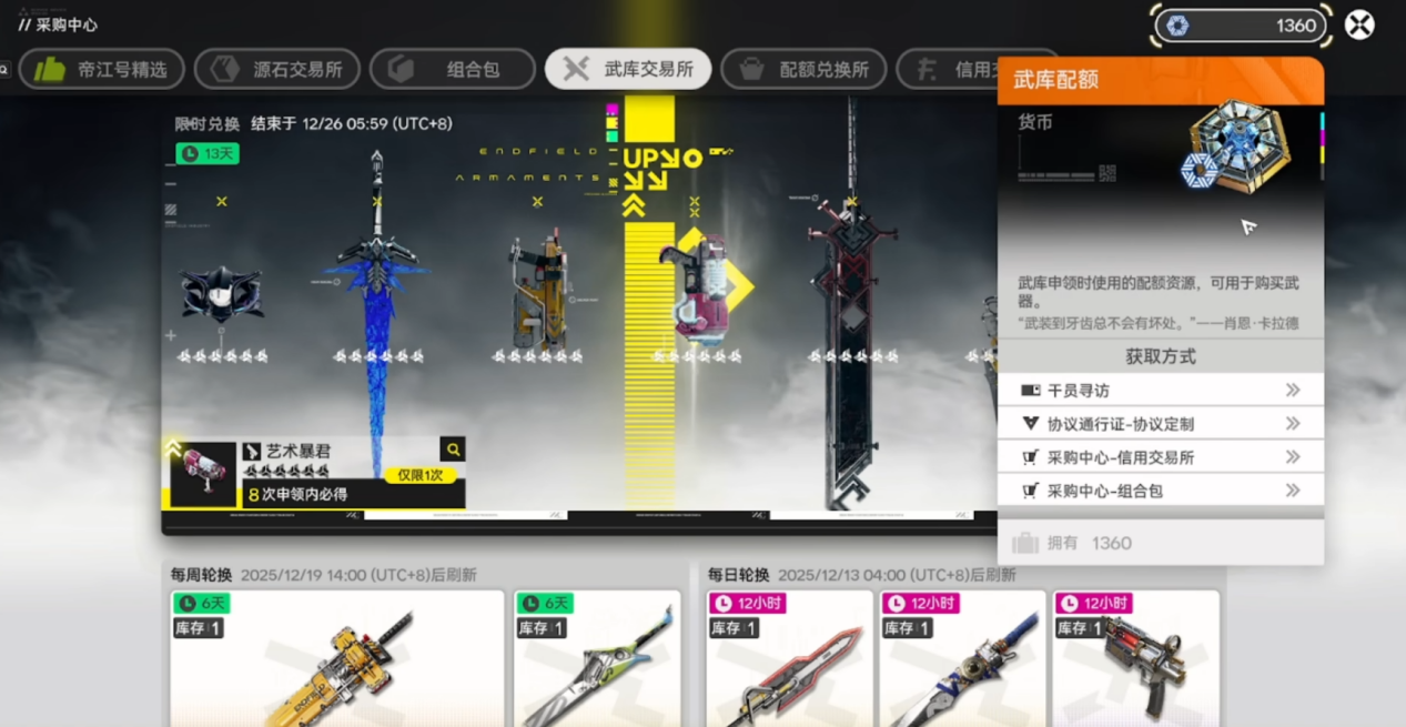 武器池:消耗角色池副产的武器配额,40抽小保底必得六星武器,80抽大保底必得当期UP六星武器,40抽后还会触发概率递增机制。
