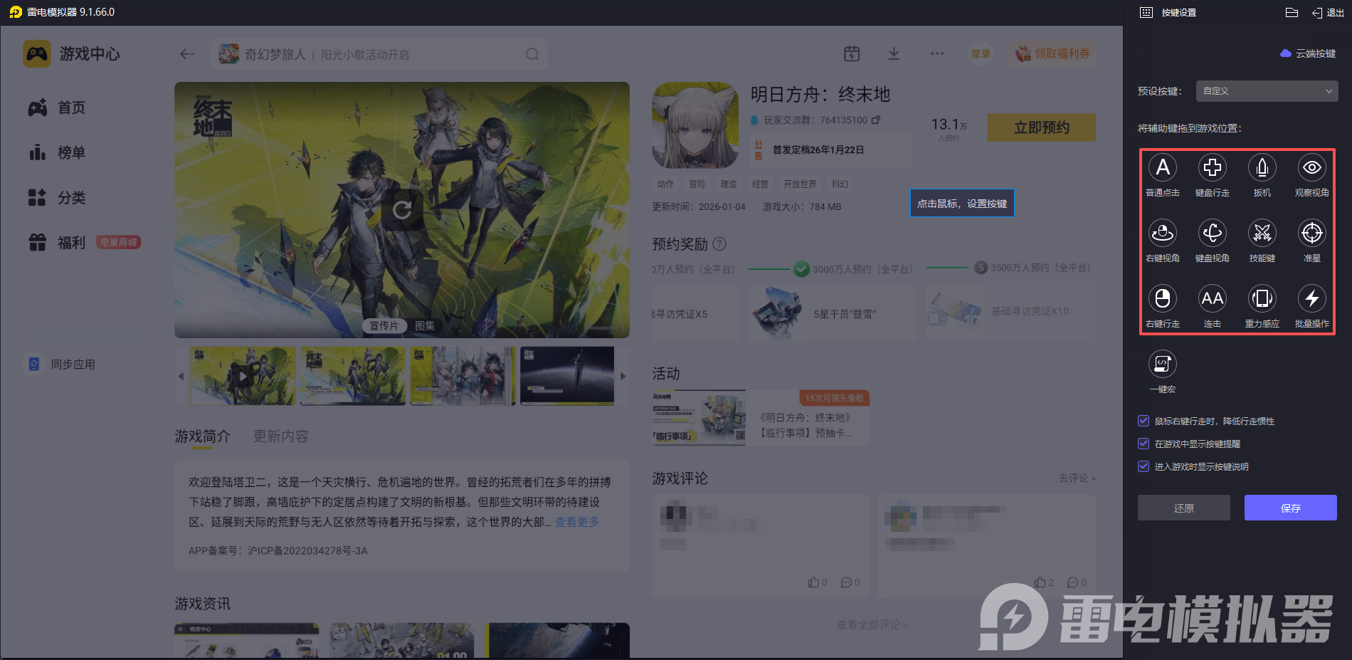 告别手机小屏幕的触控局限和可能的误触烦恼,雷电模拟器完美支持键盘鼠标自定义映射。你可以轻松设置WASD键进行360°自由行动,将干员快速切换、伊冯的寒霜连控、骏卫的破甲斩击绑定到顺手键位上,实现毫秒级的精准响应。