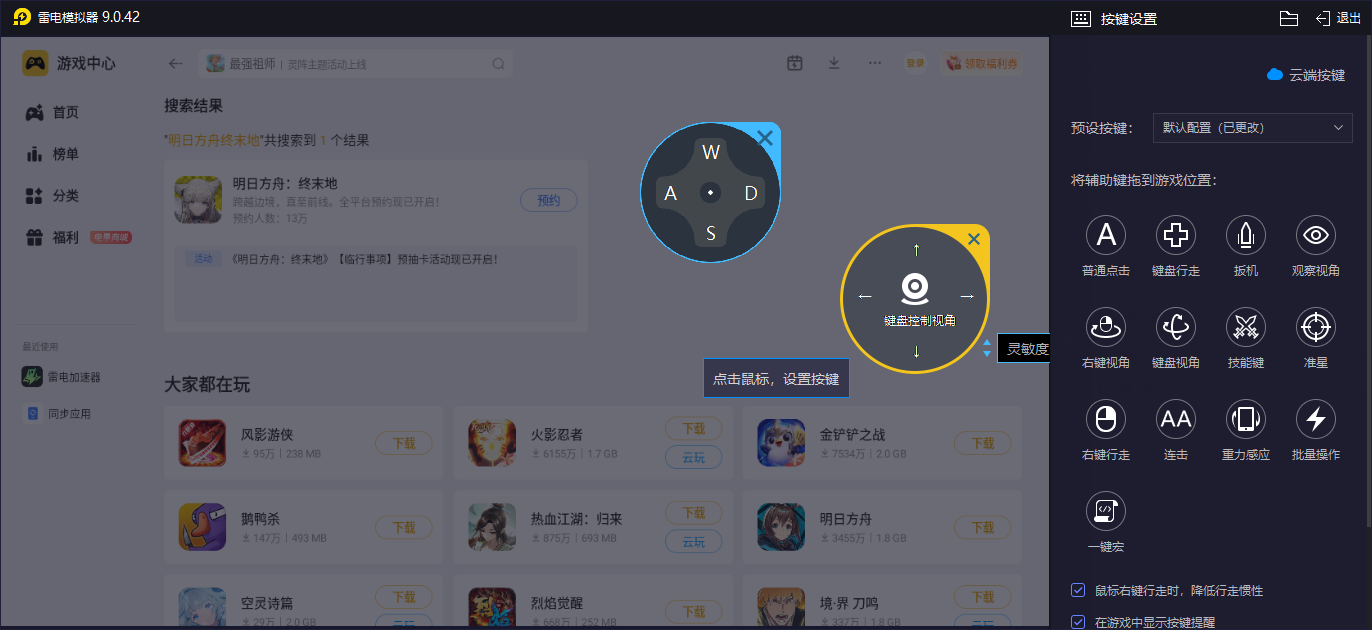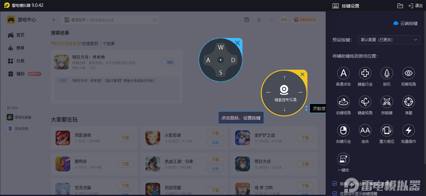 许多朋友还是希望可以让自身在面对敌人战斗期间可以更加高效的,尤其是在针对一些组合技能的使用,那么这个时候雷电模拟器所带来的按键自定义功能可以给到大家帮助,其中可以去根据自身的需要来设定不同的键位,不仅足够的便利,同时也不用担心会有操作方面的失误等发生,比起触屏来说还是很方便的。