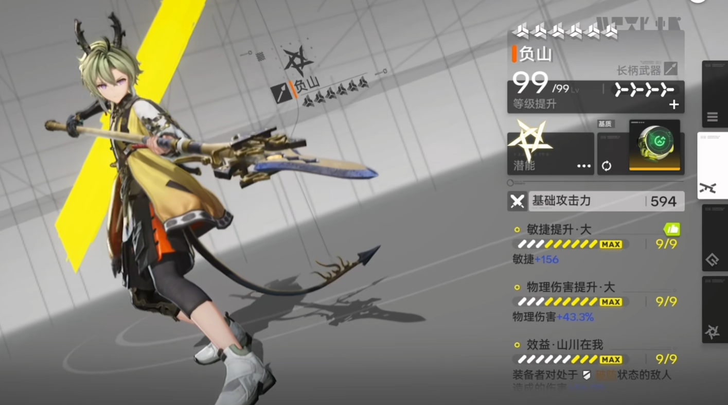 负山:提升敏捷属性与12%暴击率,技能可给被控制敌人加“重创”标记,后续重击触发5倍伤害。适合高机动性、擅长控制的近战干员,能精准打击标记目标,瞬间爆发高额伤害。