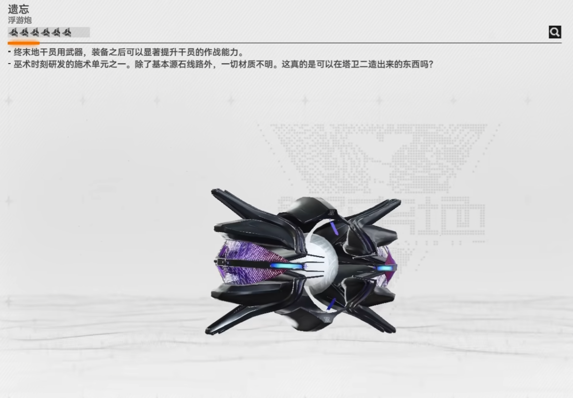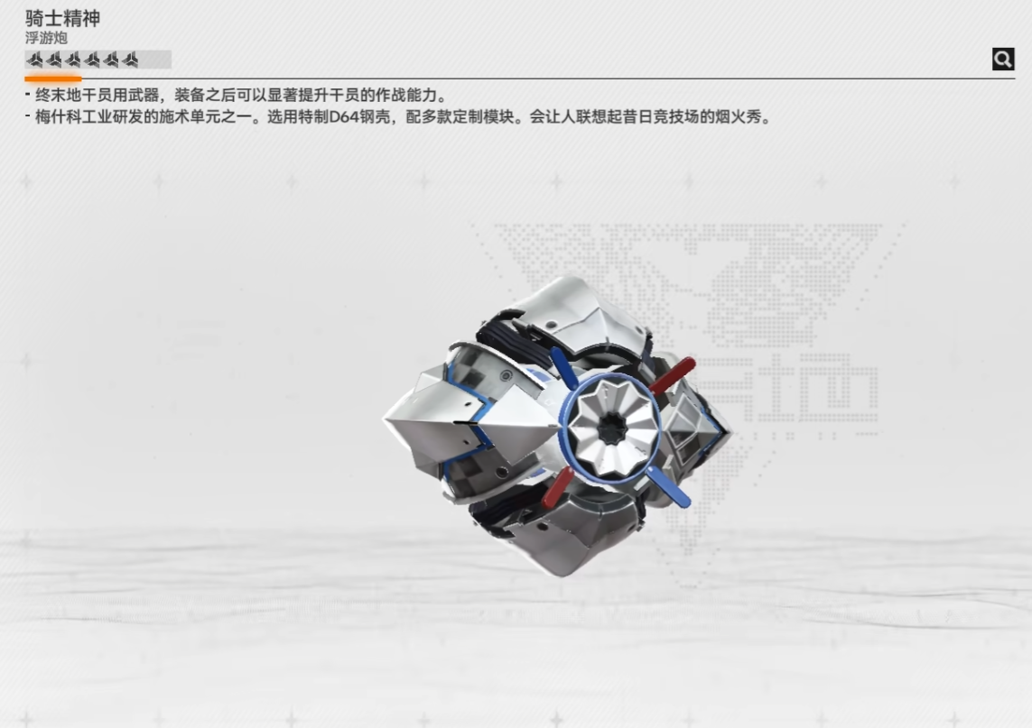 骑士精神:远程输出型浮游炮,攻击范围比常规远程武器广30%,搭载智能锁定系统,可自动追踪3个目标。无需精准瞄准,适合后排输出干员,能解放操作精力,高效清理集群敌人。
