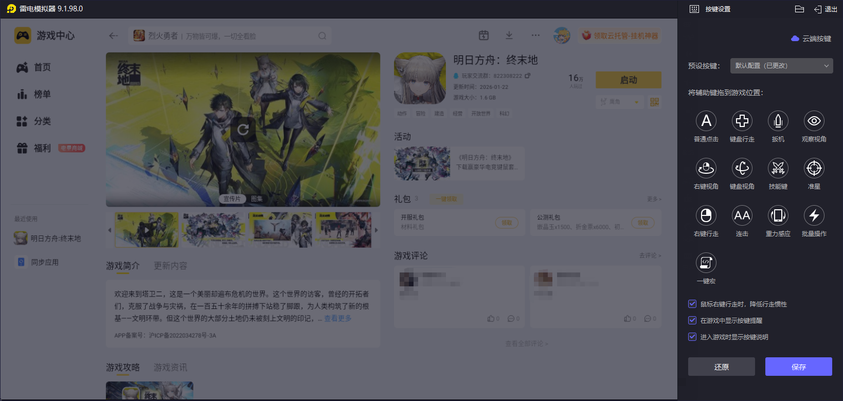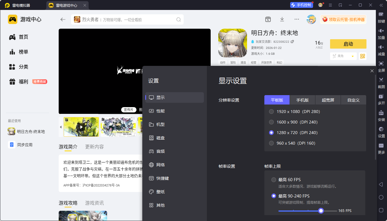 从获取模拟器到安装游戏,再到性能优化与操作适配,雷电模拟器为终末地电脑版提供了完整的PC端解决方案。其超强性能保障了荒野探索的流畅性,智能键位设计则让策略部署更精准。若想在电脑上征服塔卫二,不妨试试雷电模拟器。
