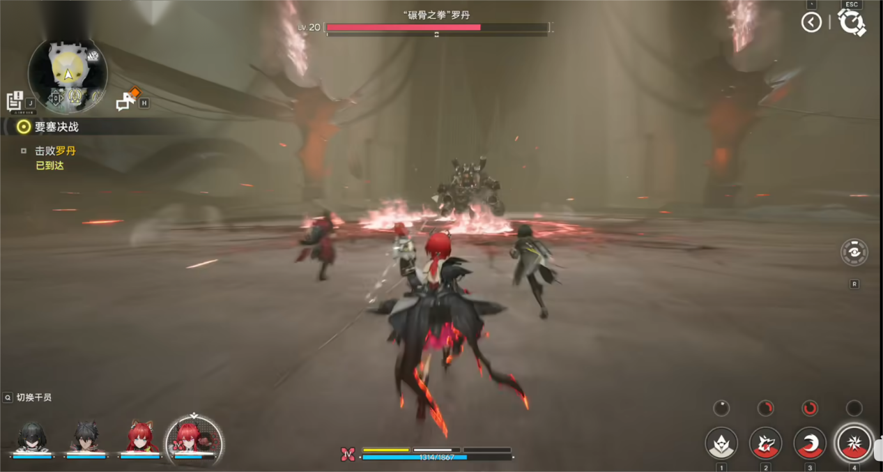 当BOSS血量剩2/3左右就会进入第二阶段,场地会出现带狂风牵引的红圈,紧盯红圈里的牵引标识,移到边缘时立刻闪避脱离,别被拽到BOSS身边。核心输出窗口是火焰喷射技能:BOSS背后4根能量管转向身前、管口变白时,会进入蓄力状态,这时绕到它身后全力输出,火焰只覆盖正前方,身后完全安全。遇到火球投掷,落地后避开灼烧区,别在同一地方停留超过2秒就行。