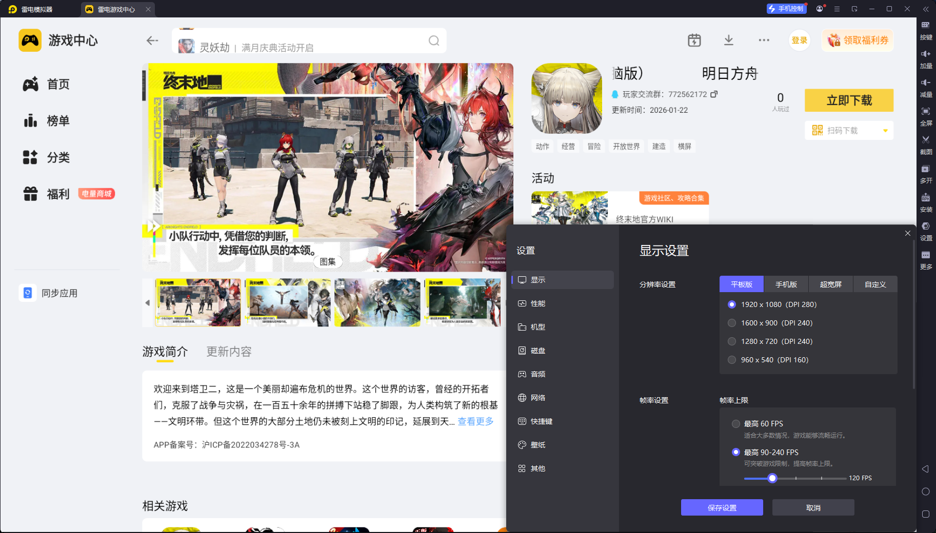 想要在电脑上玩明日方舟终末地,可以试试雷电模拟器,给你更好的剧情画面体验,