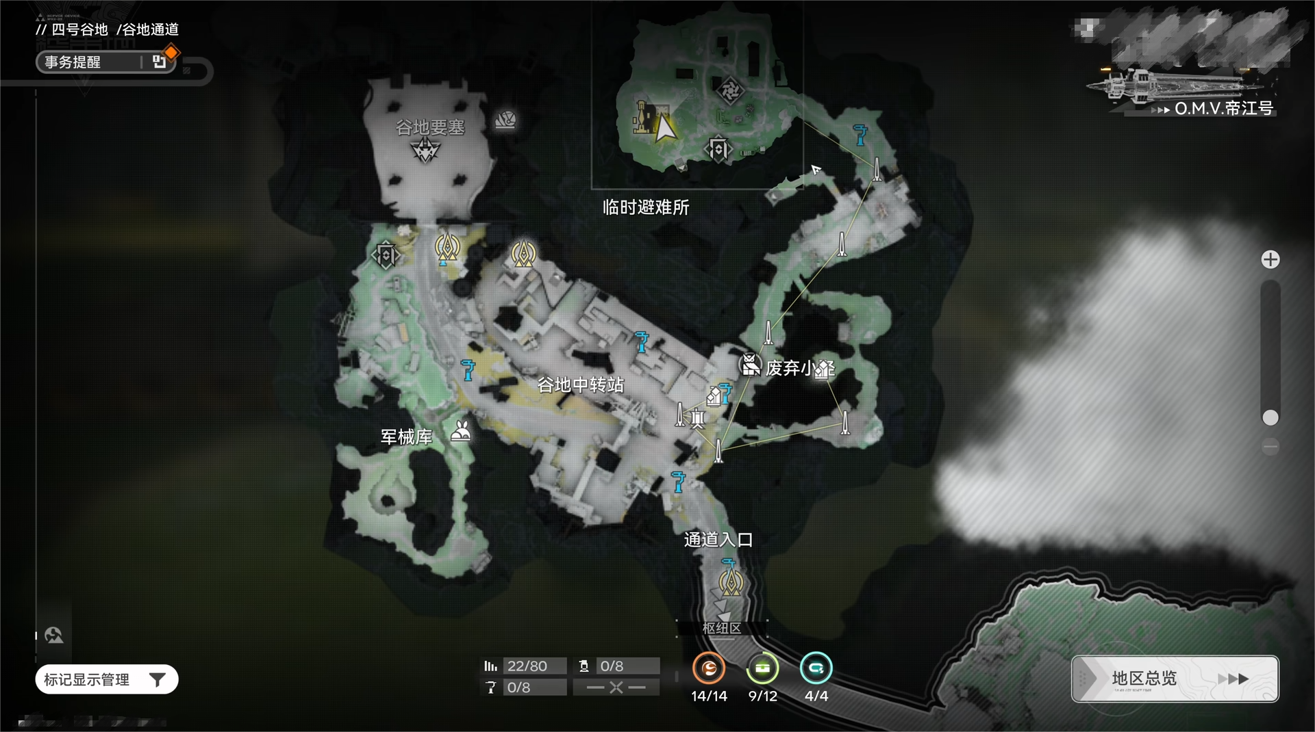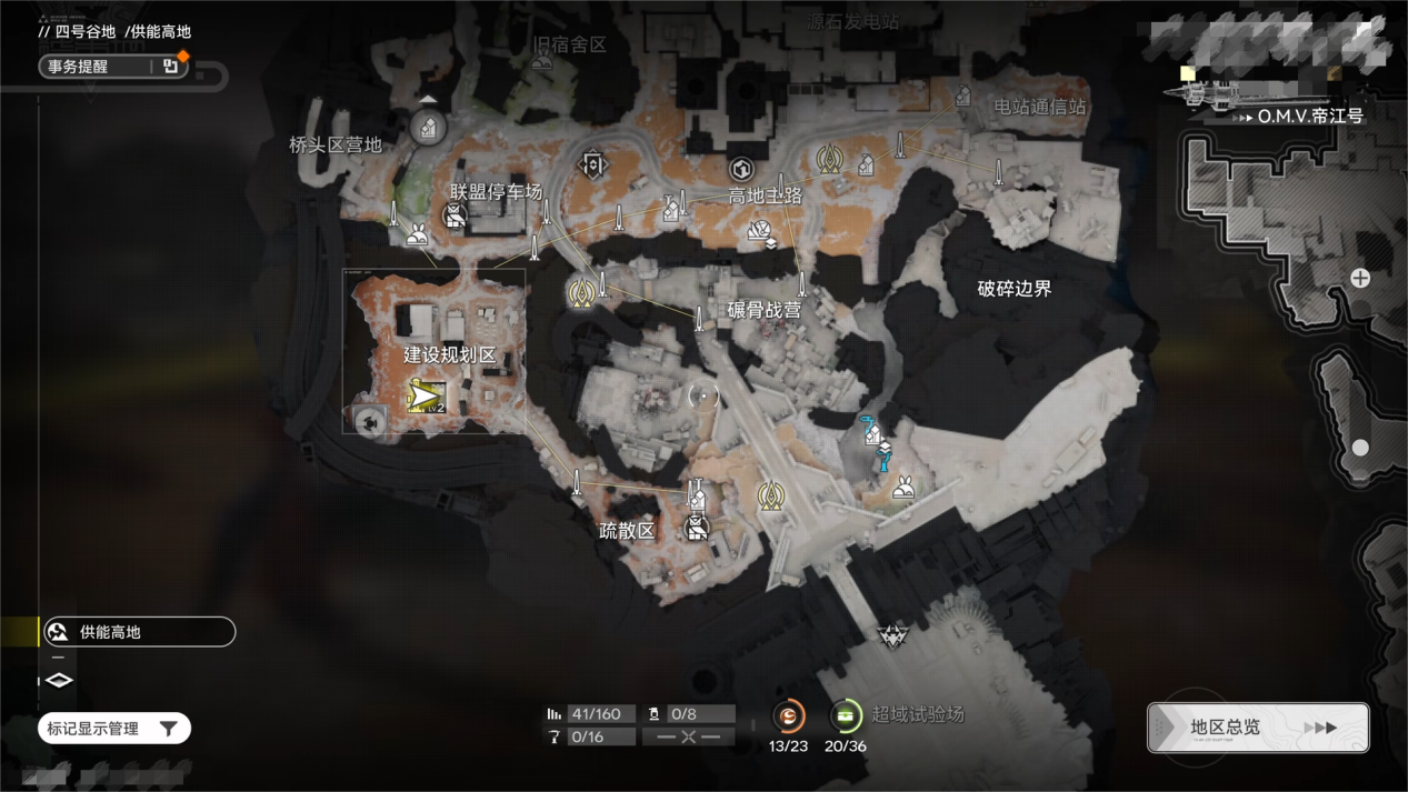 四号谷地是玩家前期探索的核心区域,资源点丰富且相对集中。沿着岸边山道前行,可以找到3个资源点,产出初期的醚质1-5号,并伴有调查点供您探索。深入研究所区域,密集分布着9个资源点,是获取醚质6-11号的重要来源,同时还能解锁关键的采录桩设施。源石实验园区也不容错过,这里的8个资源点稳定产出醚质12-15号,建议优先进行探索。当您推进到转运枢纽区域,会发现它与醇化合物工厂相邻,这里的8个资源点提供着中期的关键材料——醚质24-30号。