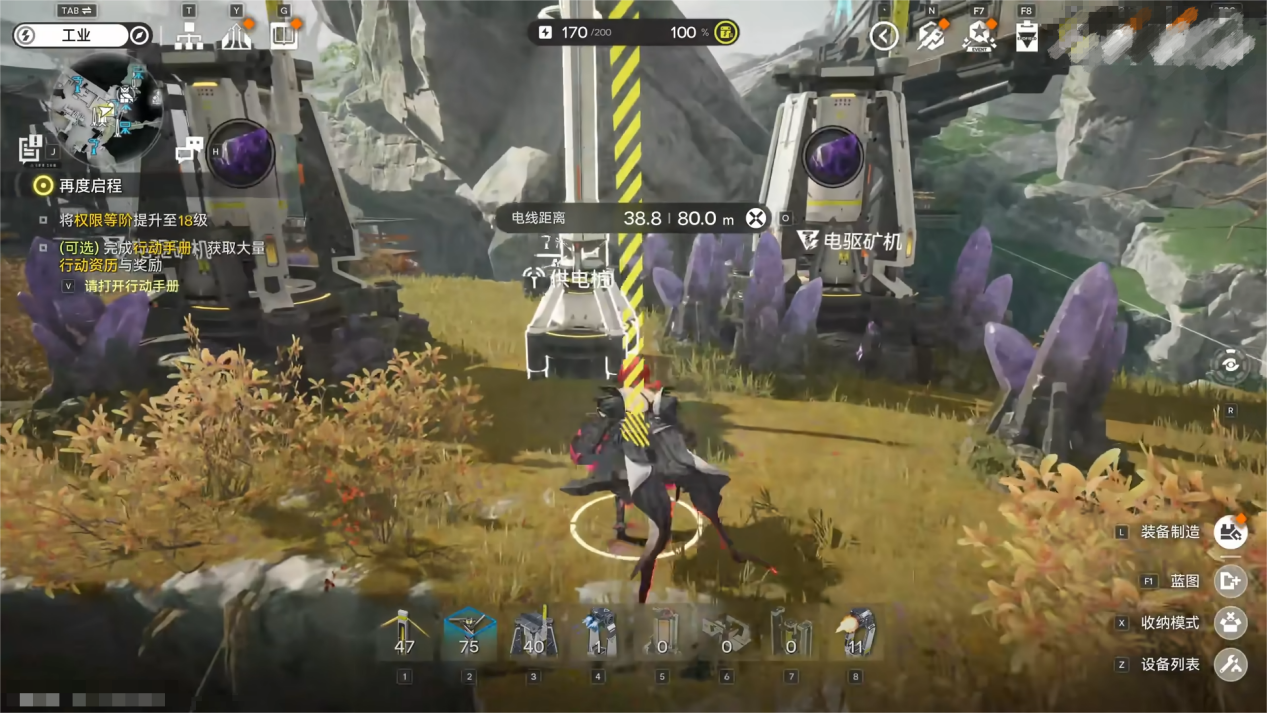 在众多矿种中,蓝铁矿因其对基建的重要性而显得尤为珍贵。这种关键材料主要集中在四号谷地周边的7个特定矿点。枢纽站的中心区域是主要产地之一,分布有4个蓝铁矿点。连接枢纽站与矿脉园区的谷地通道、需要架设数据校准基站才能激活的原石研究院矿点,以及完成“离群之狼”支线任务后方可解锁的矿脉园区东侧矿点,都是获取蓝铁矿的关键位置。值得注意的是,手动开采蓝铁矿有机会获得高纯度矿石,但这通常需要铺设电网、部署装置并保障充足能源;而自动化矿机开采则只能产出标准纯度的矿石。