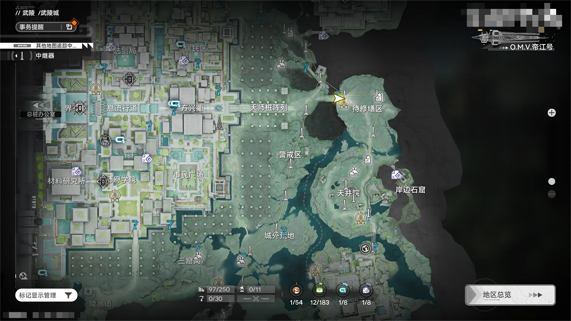 它们并非随机散落,而是有规律地集群分布在地图的各个主要区域。游戏前期,你将在枢纽区找到最初也是最容易获取的4个采录桩。随着主线任务“开拓前路”的推进并解锁更多区域,谷地中转站会提供另外4个,岸边山道区域至少藏有1个,研究所区域通常也有4个分布其中。而当你抵达规模更大的武陵城区域时,则需要更仔细地探索其各个子区域,这里通常分布着至少6个或更多的采录桩,是后期工业点数的关键来源。