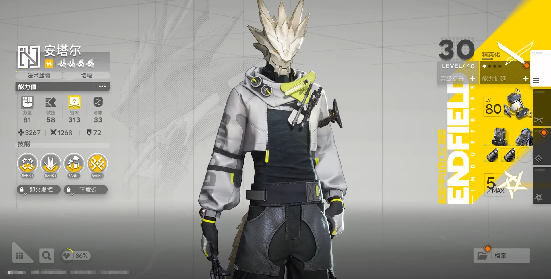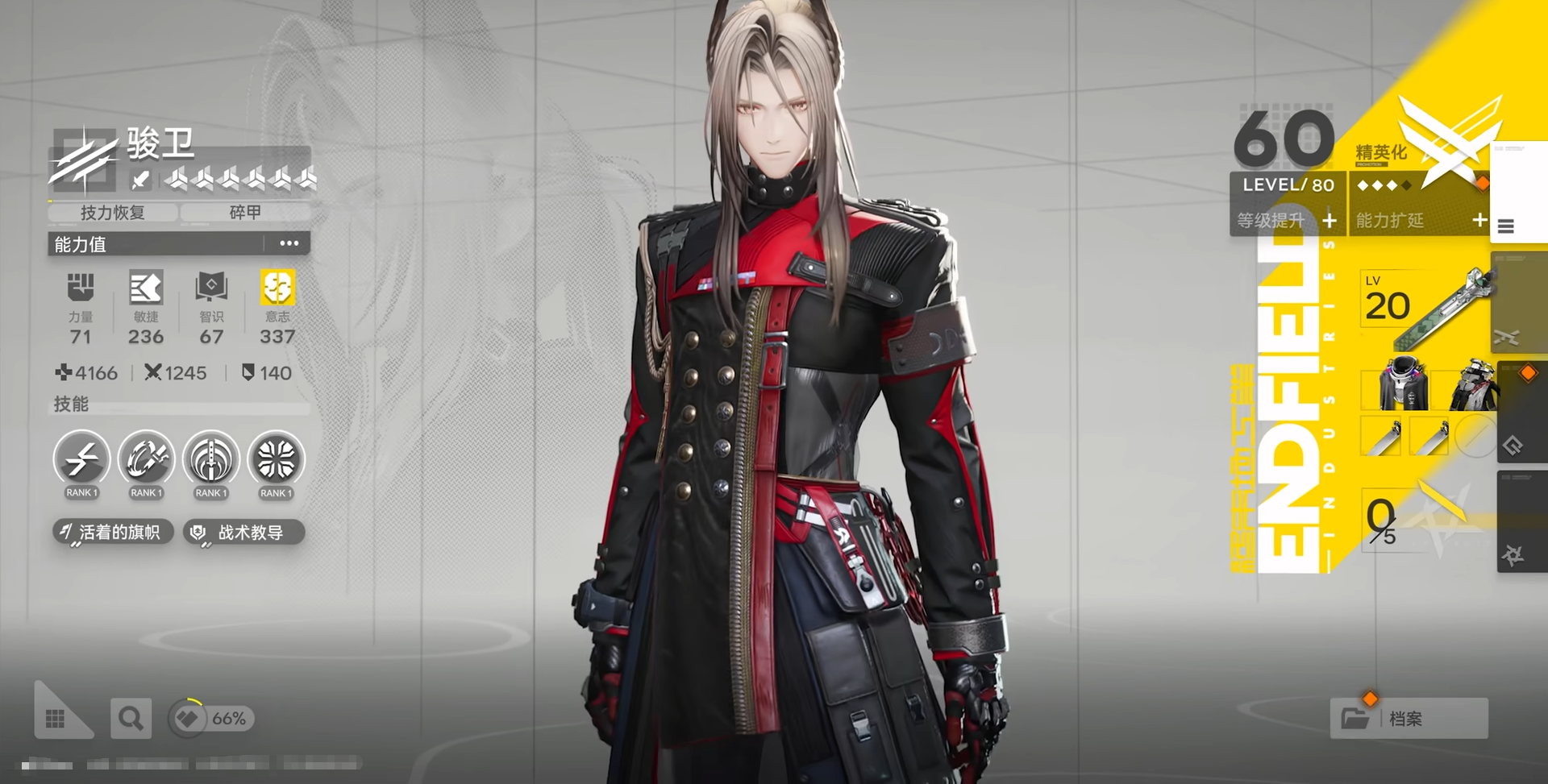 骏卫是物理队开荒的最优解,尤其适合作为初始六星选择。他的战技自带碎甲效果,能有效削弱敌人防御,且自身技力回复速率位列全角色前列,保障了技能循环的流畅性。其跑图能力强悍,只需搭配如陈千语等四星物理干员即可快速成型一支高效的物理推图队伍。