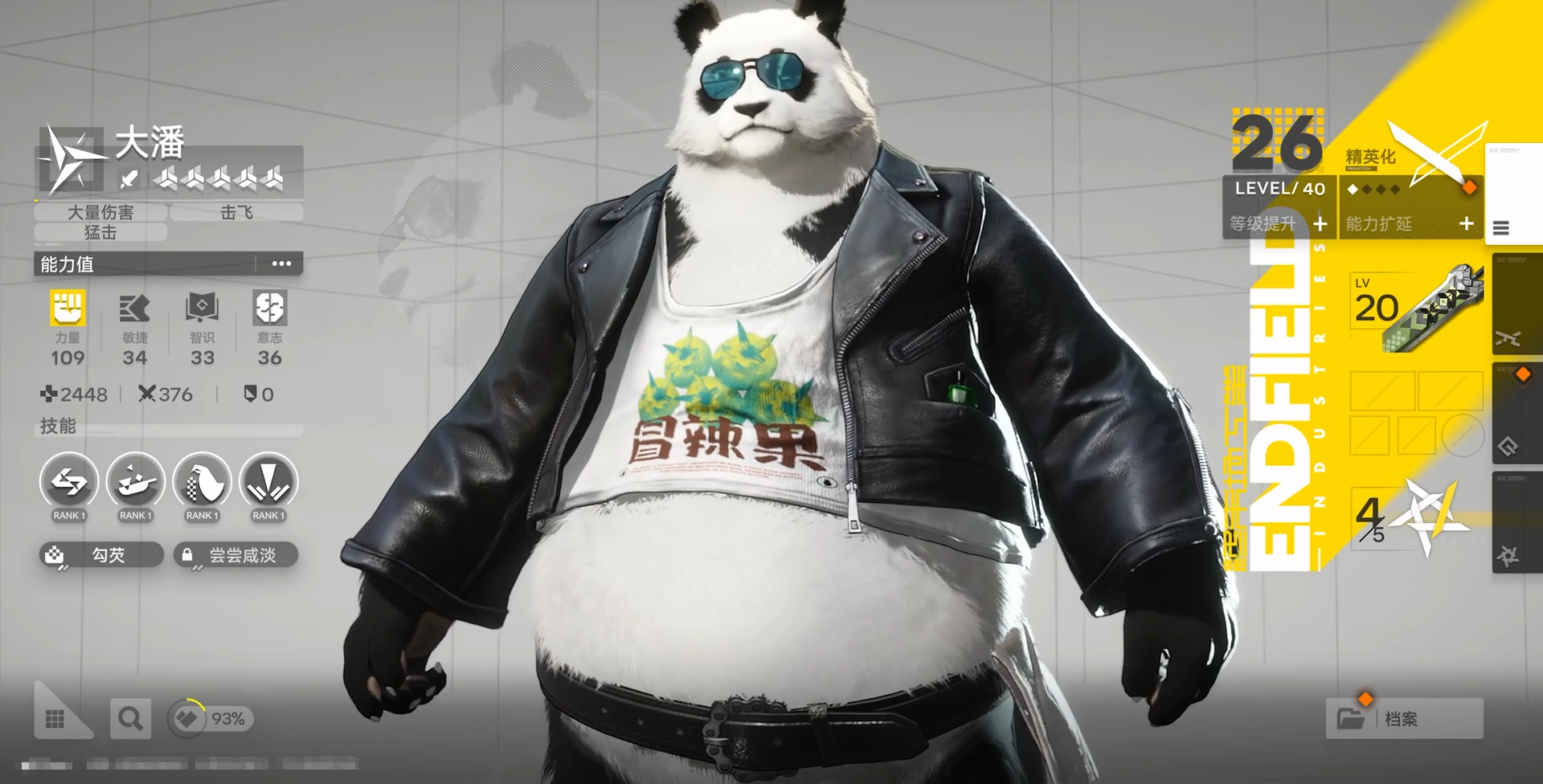 大潘在开荒期同样表现亮眼,可视为T0.5级别的选择,其战技范围大、连携技冷却短,非常适合前期快速清理杂兵,虽然后期上限相对有限,但开荒期性价比极高。