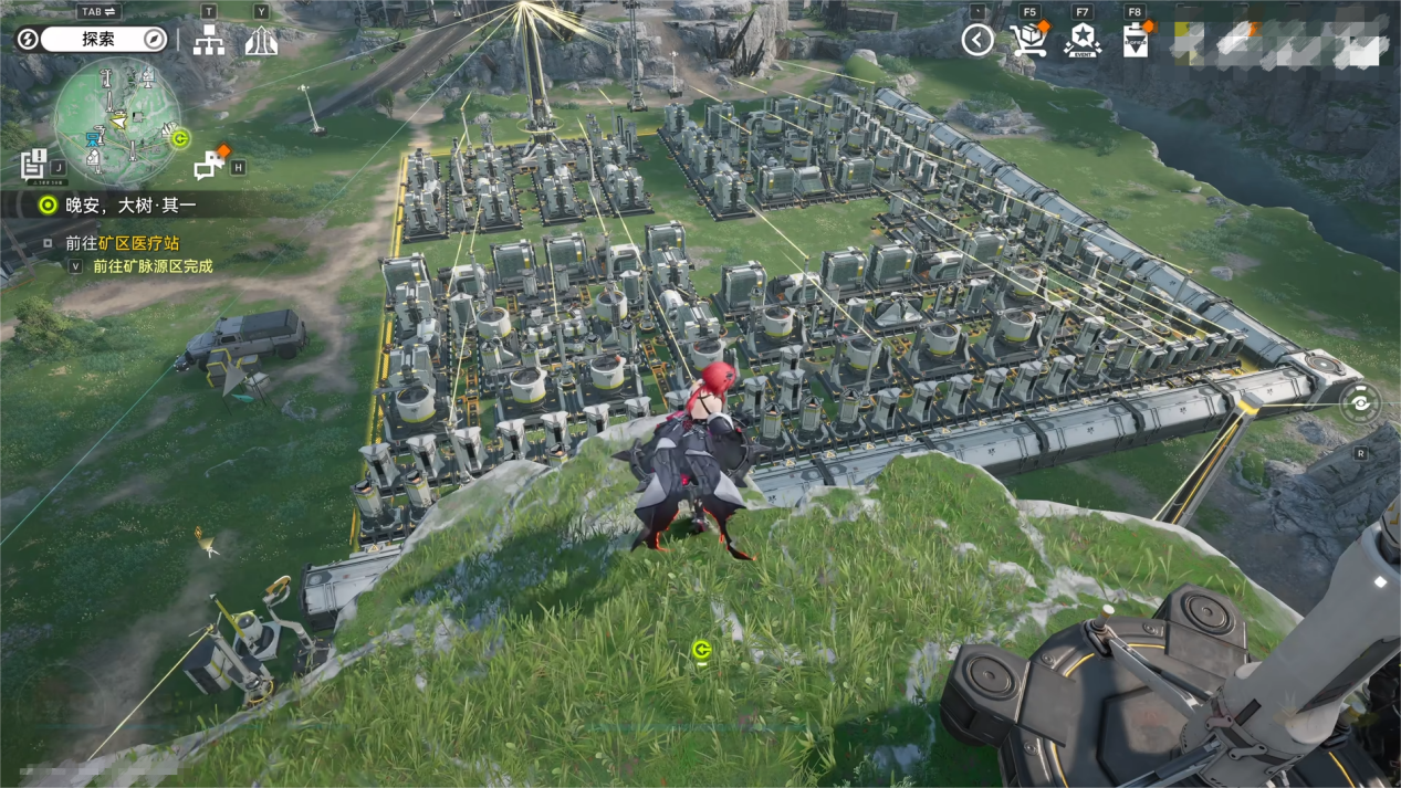 资源采集依赖部署在矿点的电驱矿机,通电后它们会自动开采并将原料输送至协议核心仓库。生产的核心在于构建自动化产线:从核心的输出口铺设传送带连接到加工设备,加工后的成品再通过传送带送回核心。复杂的物品往往需要多级加工。产出的富余物资可以通过调度券系统兑换,这是获取刻写券、突破材料等稀有资源的重要途径。