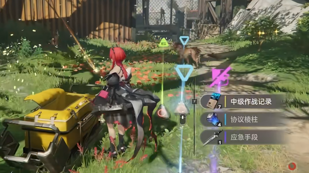 (4)按下铁门机关进入后,先向左到集装箱区拿醚质,再上东南方向楼梯采集固定资源点,下楼后在左手边轮胎堆里找到隐藏宝箱,记得先清理右侧敌人保障安全;
