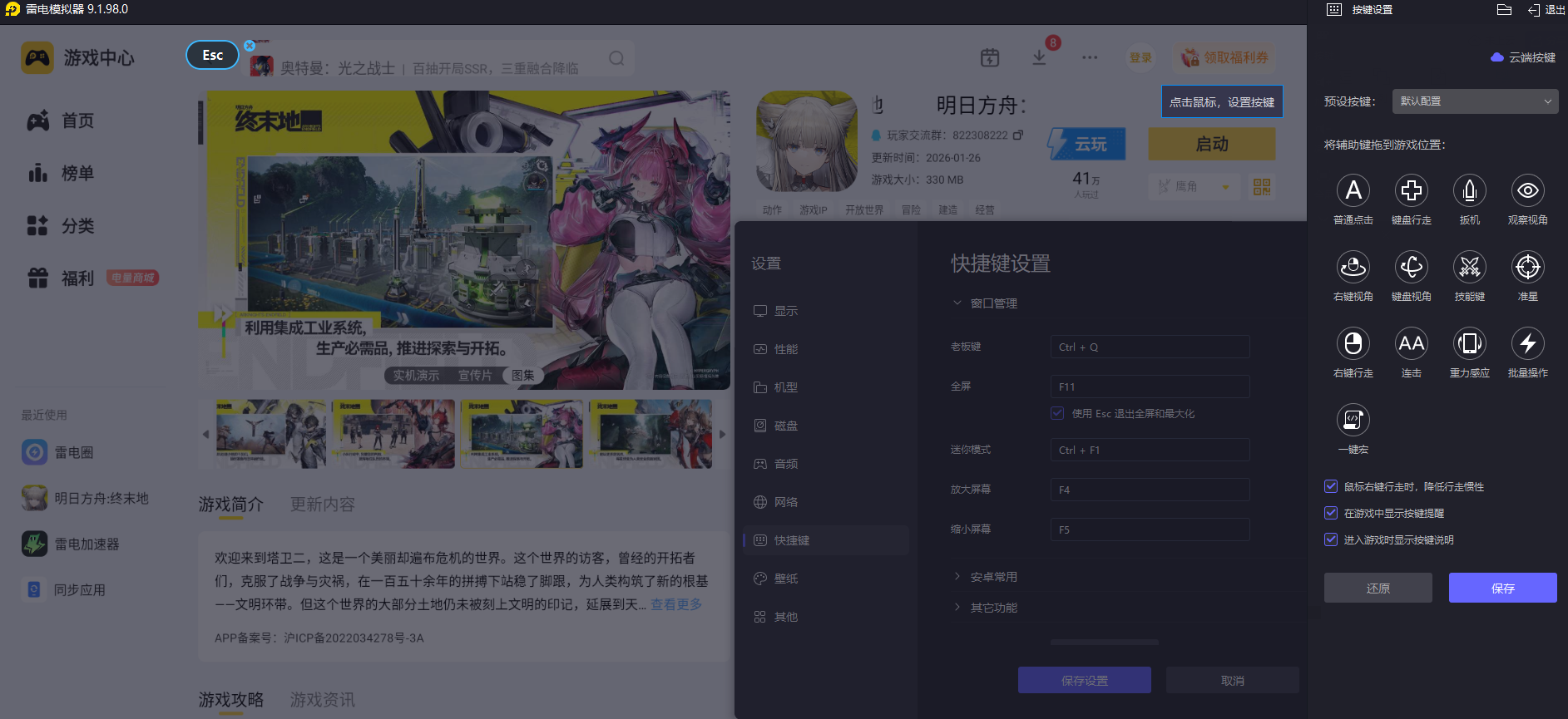 模拟器支持自定义键盘鼠标映射,玩家可以根据自己的使用习惯,将手游中的跳跃、攻击、交互等各类操作设置成熟悉的按键,比手机触屏操作更精准。不管是快速移动、精准点击目标,还是连续释放技能,键盘鼠标的操作响应都更及时,能有效避免触屏操作时的误触问题,操作体验更顺手。
