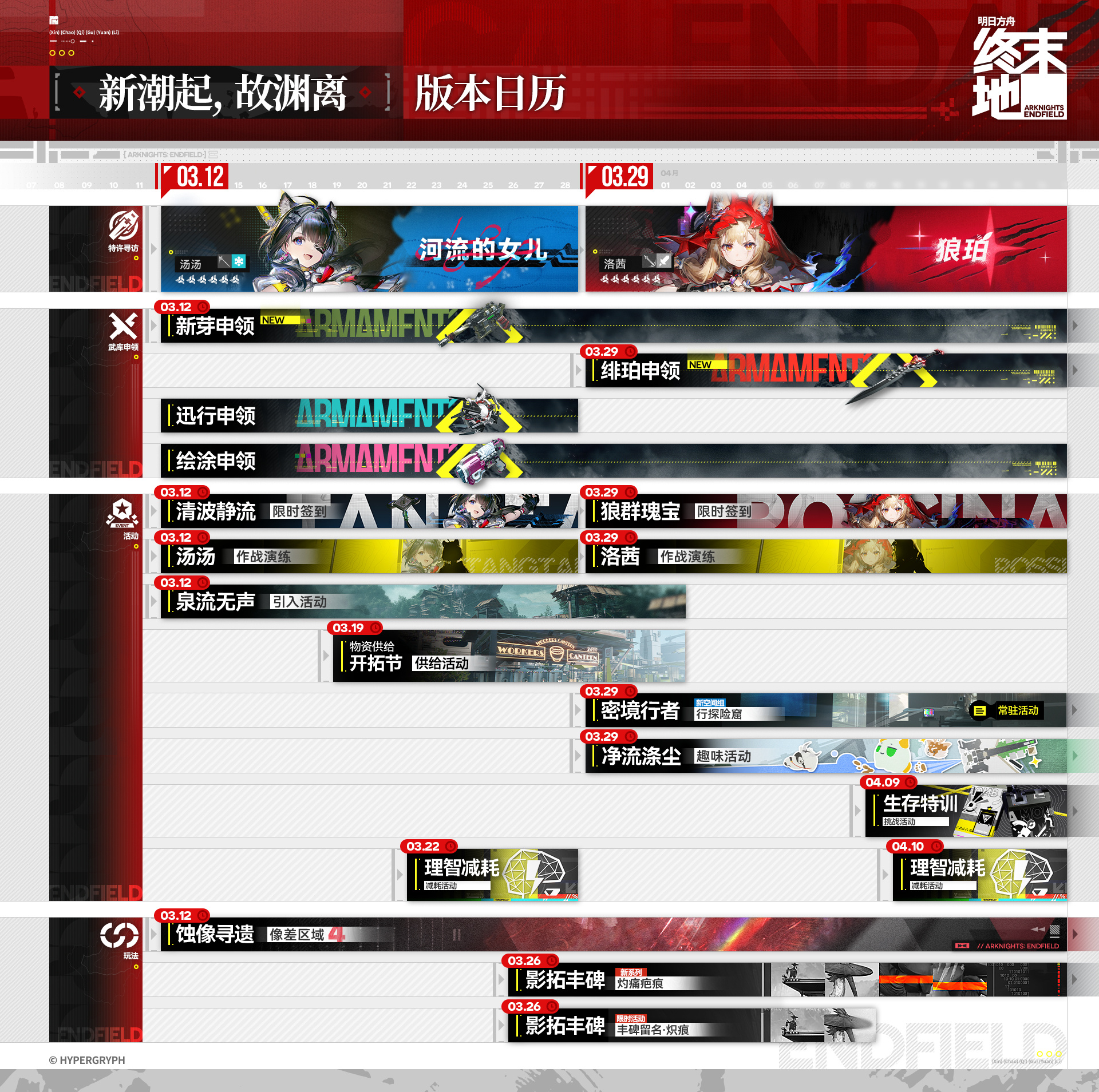 全新版本「新潮起,故渊离」将于3月12日正式开启!以下为「新潮起,故渊离」版本日历,请管理员查阅。