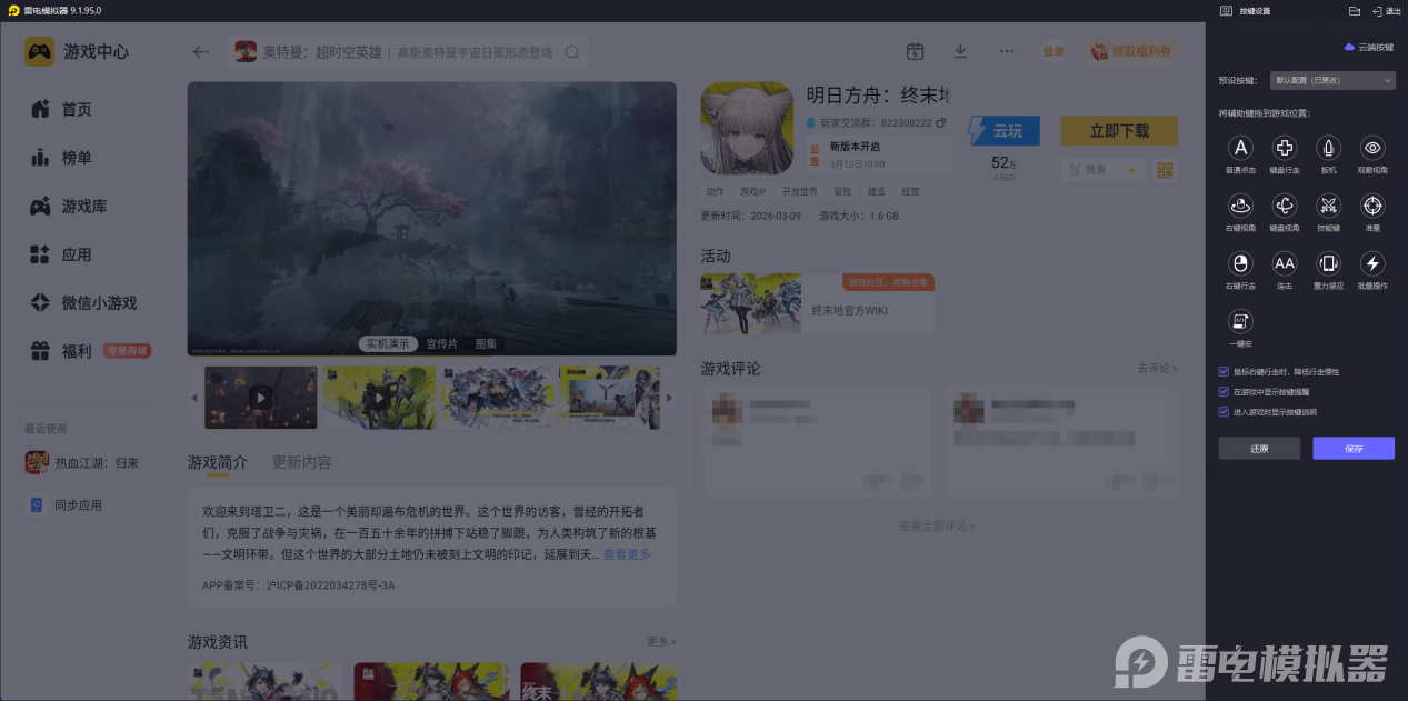 想要沉浸式体验全新剧情、轻松攻克版本难点,推荐使用雷电模拟器游玩,解锁更流畅、更精准的游戏体验,轻松玩转明日方舟终末地1.1版本的所有内容。