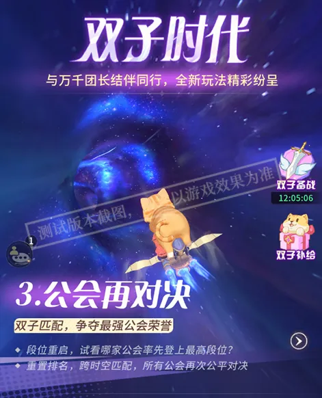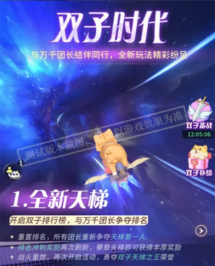 雪儿打探到最新消息——游戏内即将新增“双子时代”体系!据说这是一个超大服生态,让团长们在游戏内越玩越热闹,体会到更多游戏乐趣!