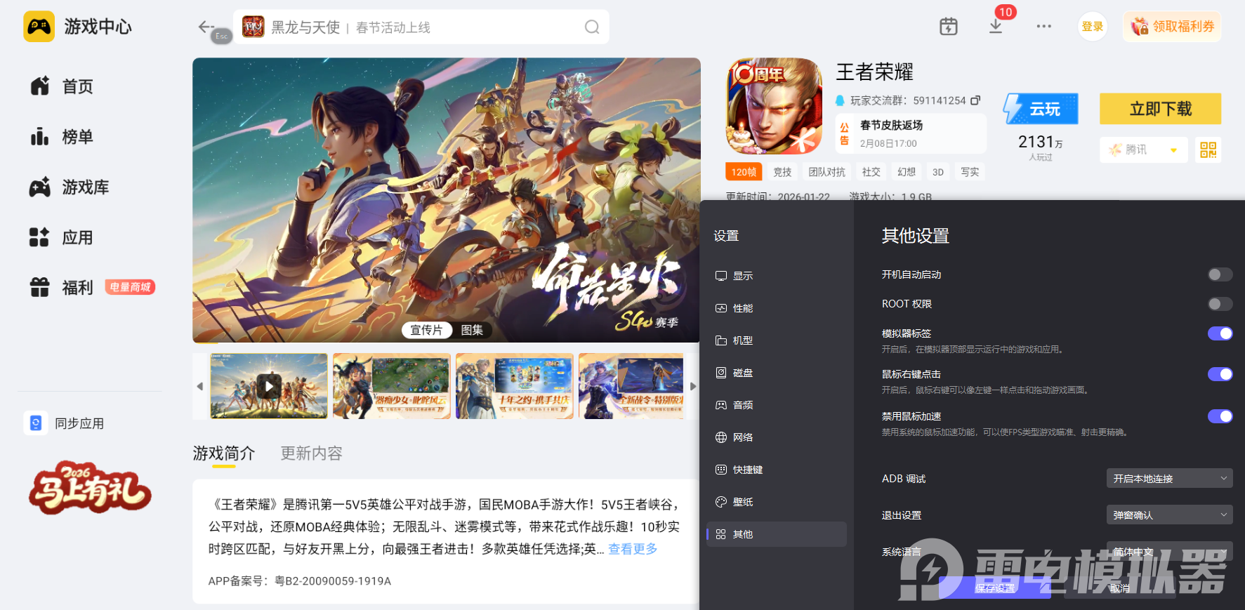 雷电模拟器云游戏,王者游玩优选方案