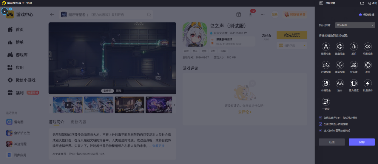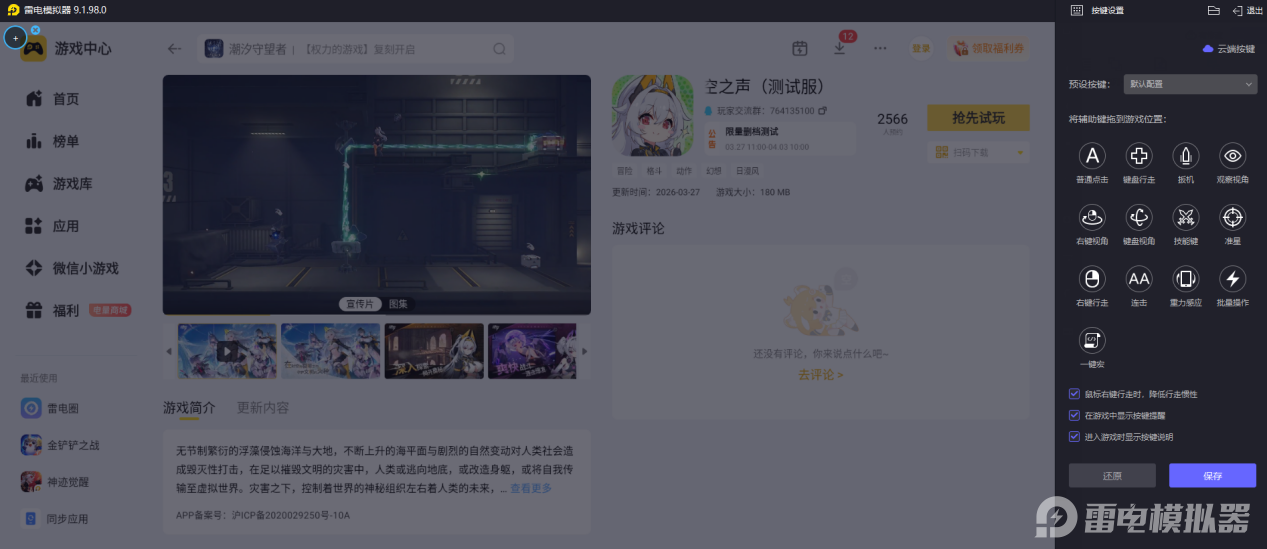 要塞战斗需要快速反应与精准操作,尤其是面对鞘骸的机械攻击与蛛后无差别突袭时,普通触屏操作容易出现指令延迟或误触,雷电模拟器的键鼠自定义功能完美解决这一问题,可将技能释放、移动、跳跃等操作映射到键盘鼠标,根据个人习惯调整按键布局,实现更精准的连击与走位,轻松应对要塞中复杂的战斗场景,提升战斗效率与探索成功率。