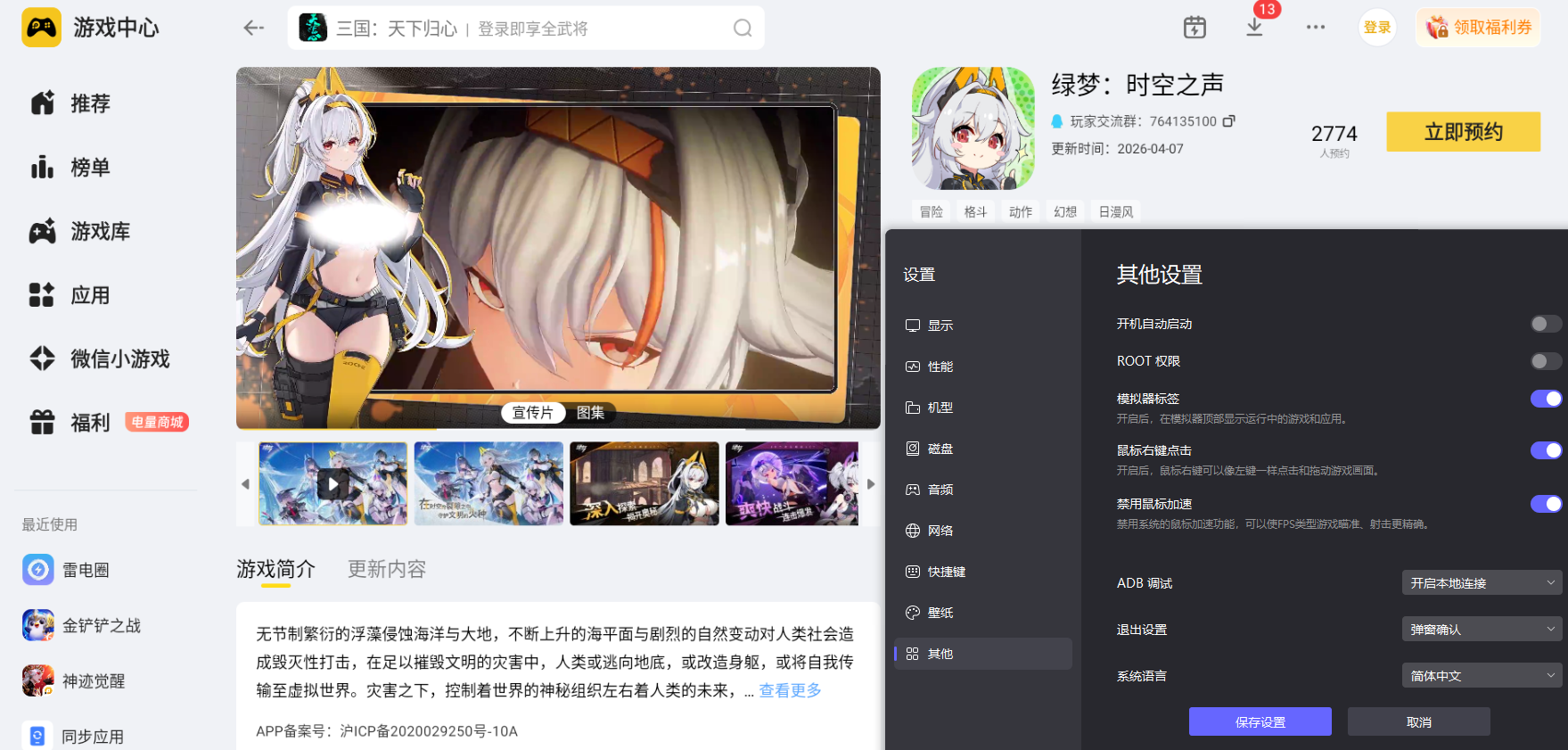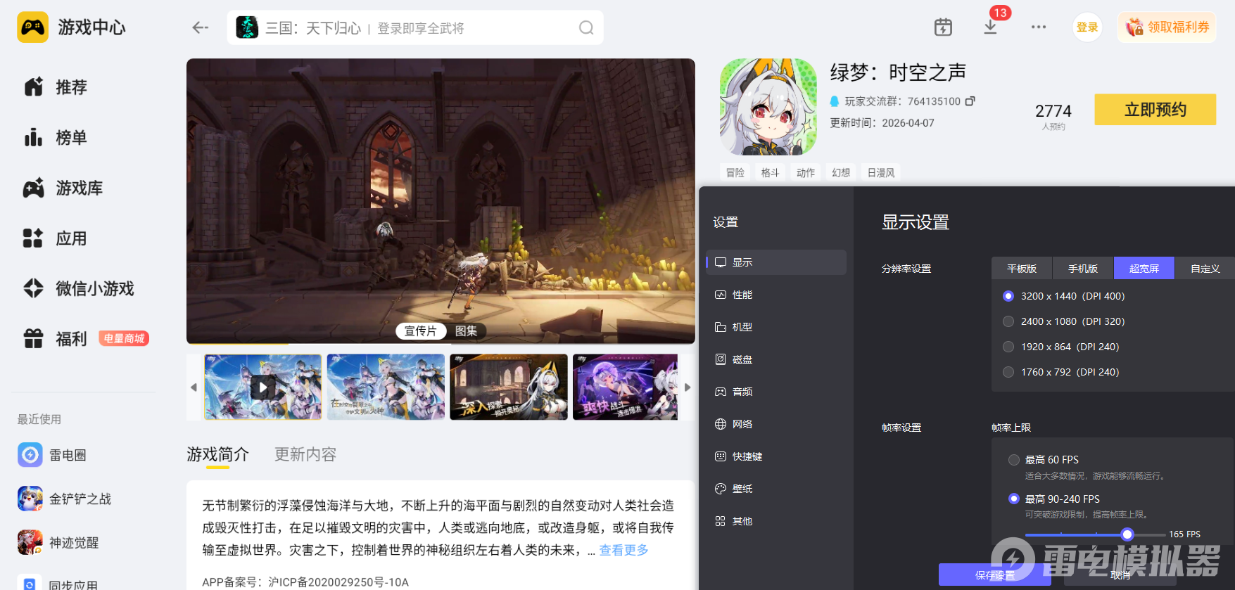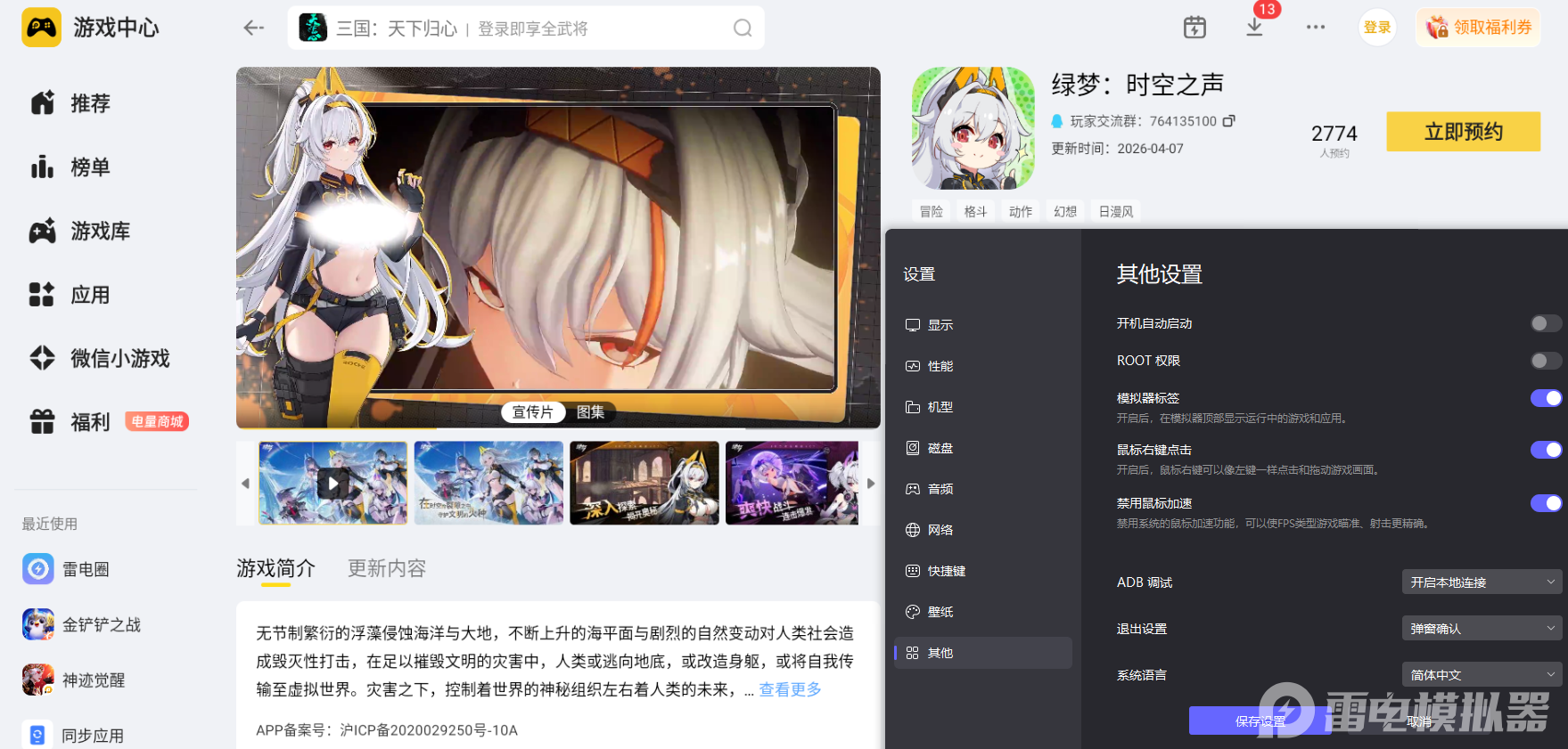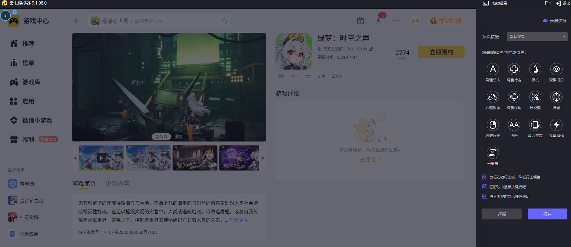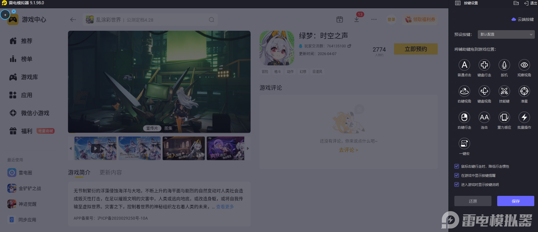 当然,大家也用雷电模拟器在电脑上玩绿梦时空之声,更大的屏幕带来更广阔的视野,键盘鼠标提供更精准的操作控制,全方位提升游戏乐趣。