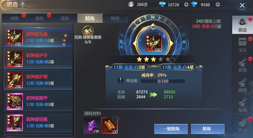而装备精炼,其实精炼晶石小佐拉认为不用心疼,主要是用好保底符,大胆的自动精炼,在3星的时候停下,配合保底符去升星,这样往往是最省道具的!