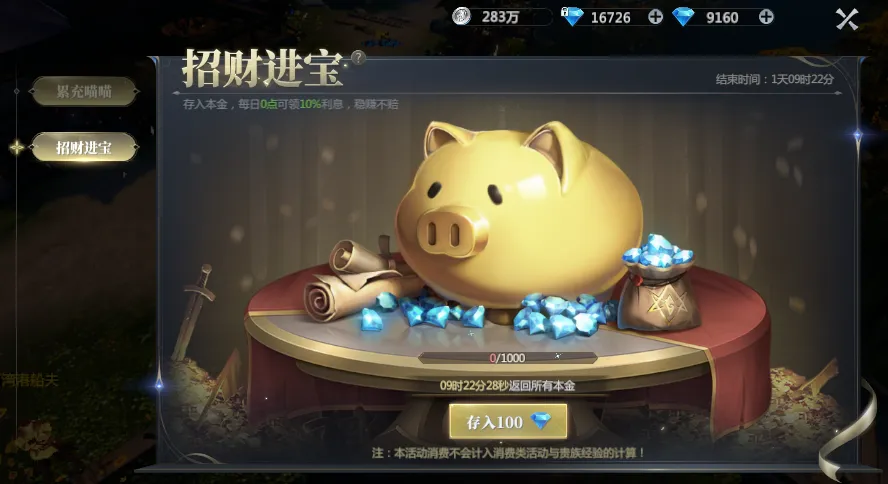 还是那句话,留着一千钻石存进去招财进宝,将所有的零元购都购买了