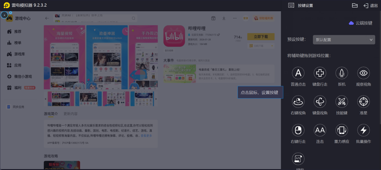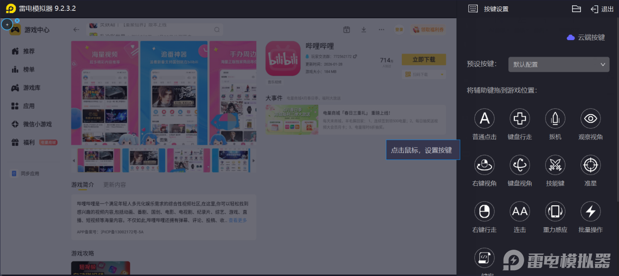 雷电模拟器的另一大优势是便捷的键鼠操作,相较于手机触屏,鼠标点击定位更精准,键盘操作更高效。刷视频、切换番剧、发送弹幕、点赞收藏等操作,均可通过键鼠快速完成,还支持自定义快捷键,可根据个人使用习惯设置常用操作,大幅提升使用效率,让电脑端使用B站更顺手。
