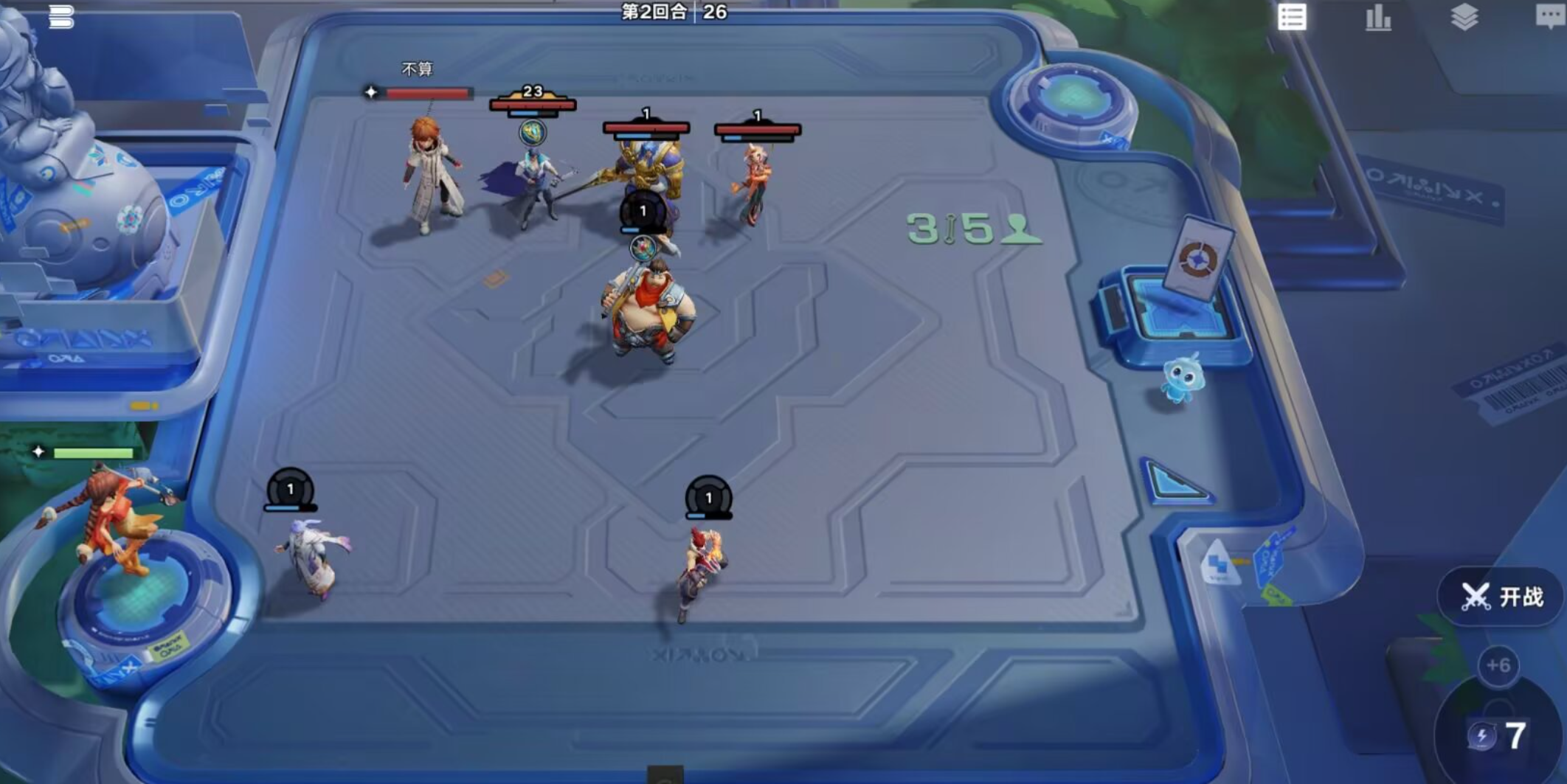 备战阶段是玩家操作阶段,进行刷新商店购买棋子、拖动调整站位、合成升级、装配装备、更换羁绊构成等;战斗阶段则是全程自动模式,棋子按预设阵型释放技能,直到一方全员阵亡或时间耗尽。回合胜利获得能量点,用于下回合操作,失败扣除生命值。