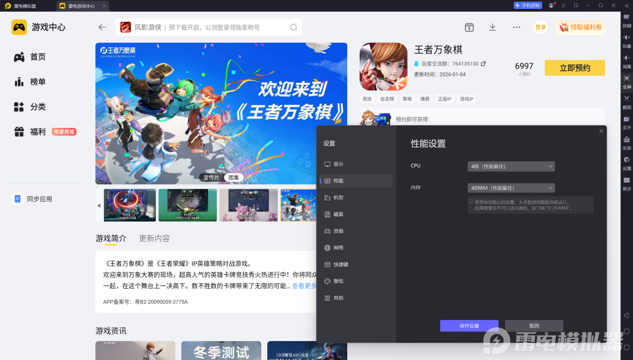 想知道王者万象棋什么时候上线,雷电模拟器是最佳的信息获取渠道。不仅能在王者万象棋上线和公测时及时通知,还带来一系列畅玩游戏的便利功能。