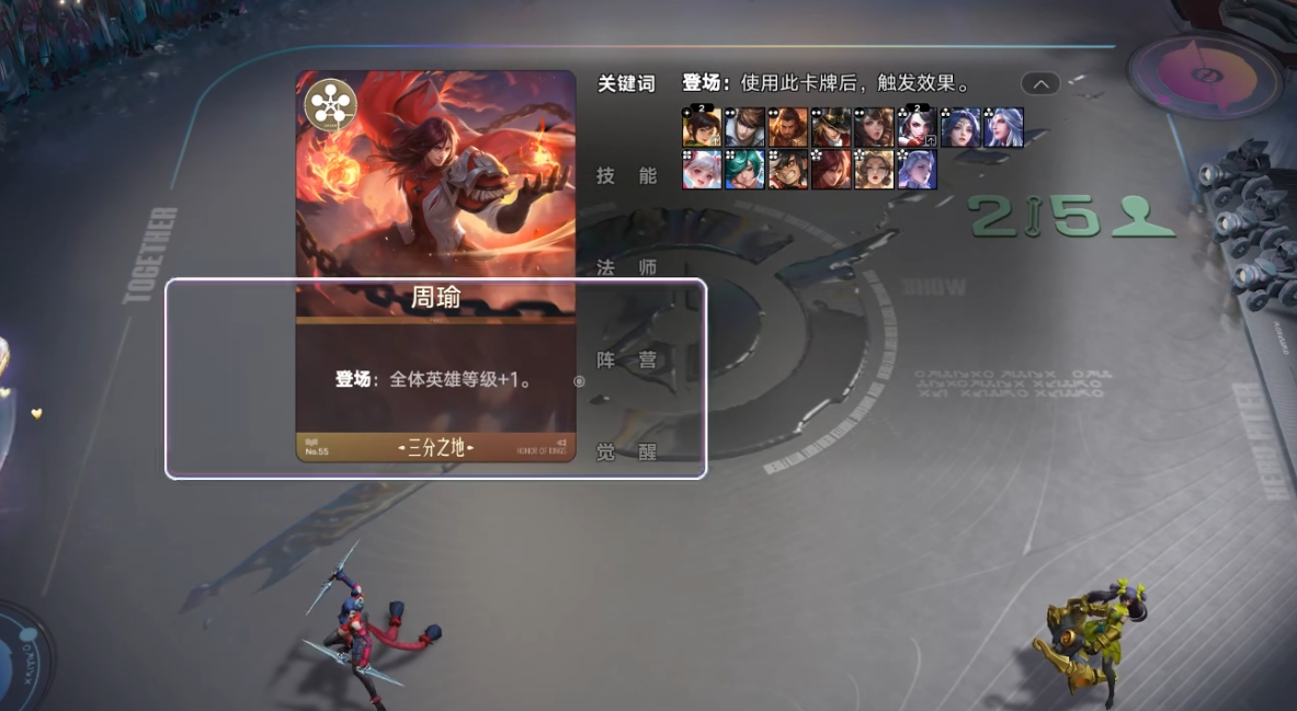 把带有这个关键词的卡牌放到场上,或者用“唤醒”功能,就能触发对应的效果。比如周瑜的登场效果是让全体英雄等级加一,上场后马上就能获得加成。