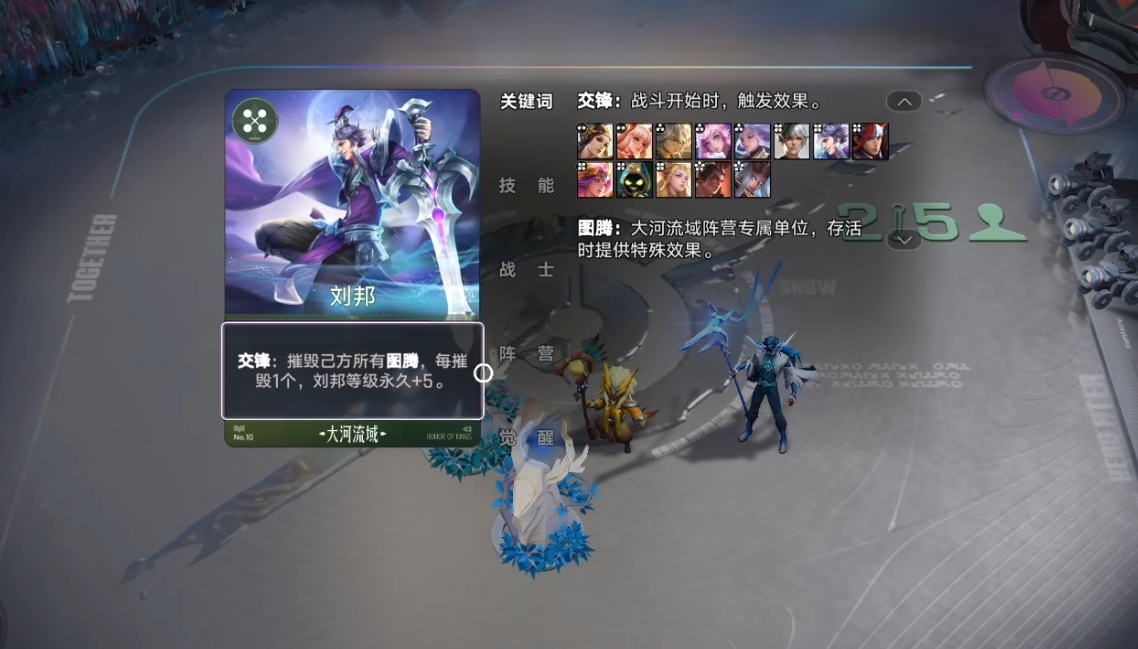 备战时间结束、战斗开始前自动触发,目前只有近战棋子能激活,每回合最多触发一次。比如刘邦的交锋效果是摧毁图腾获得等级,开打前就能拿到增益。