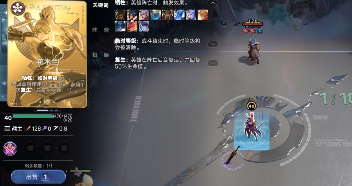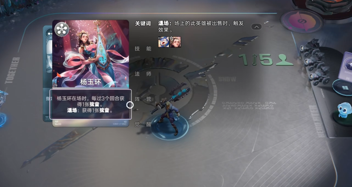 把场上带有这个关键词的英雄售出后触发效果。比如杨玉环退场后能获得“和谐音”,可给英雄增加1-3级。