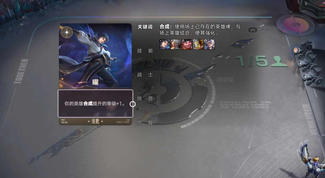 再次打出同名牌合成时触发效果,比如曜的合成效果是额外增加一级,比普通合成的等级加成更高。