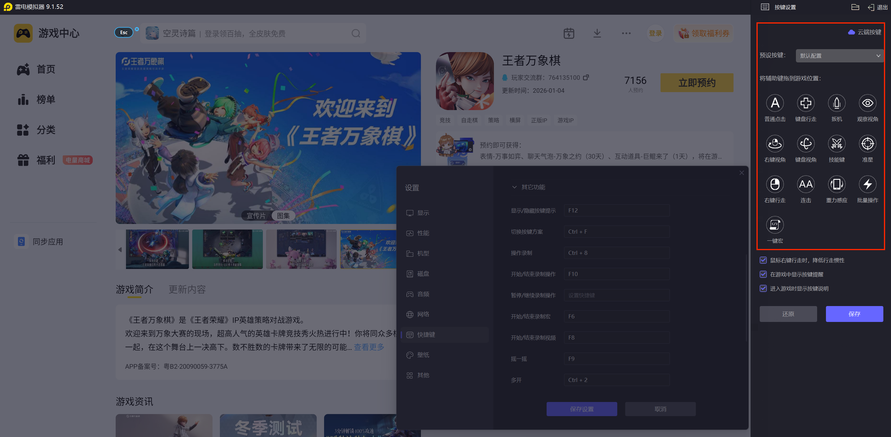 在操作体验上,雷电模拟器支持键盘鼠标精准操控。玩家可以通过自定义键位,将游戏中的棋子选择、摆放、升级、合成等映射到键盘快捷键和鼠标点击,实现比手机触屏更快速、准确的操作响应。这对于需要快速决策和精准操作的对战过程至关重要,能有效避免触屏操作可能出现的误触问题,提升操作效率和游戏掌控感。