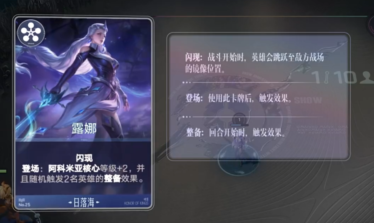 露娜牌作为日落海的5阶核心,关键词效果为登场阿科米亚核心等级+2,并且随机触发2名英雄的整备效果。在觉醒后能一次性触发4名英雄的整备效果,大幅加速整备体系的成长速度。