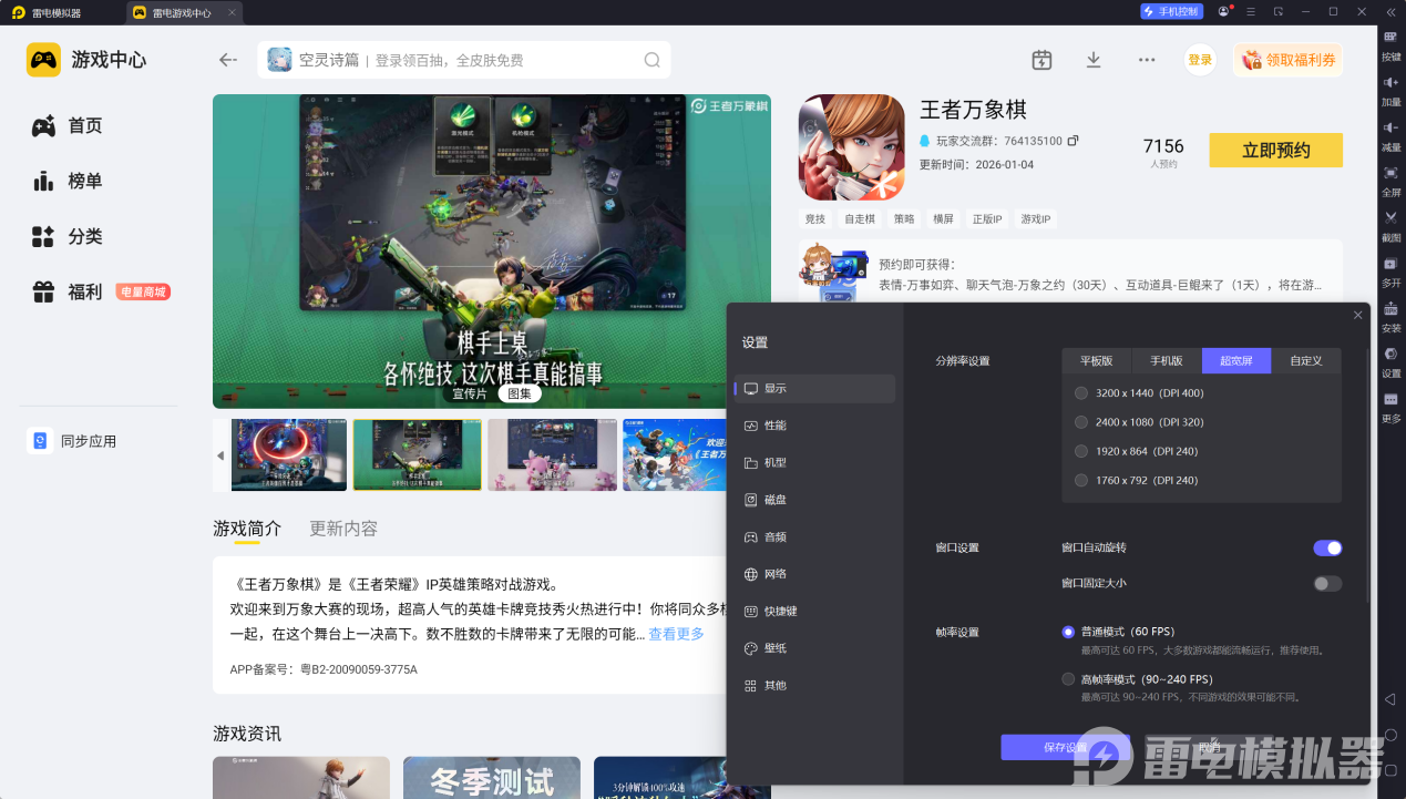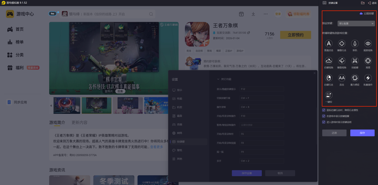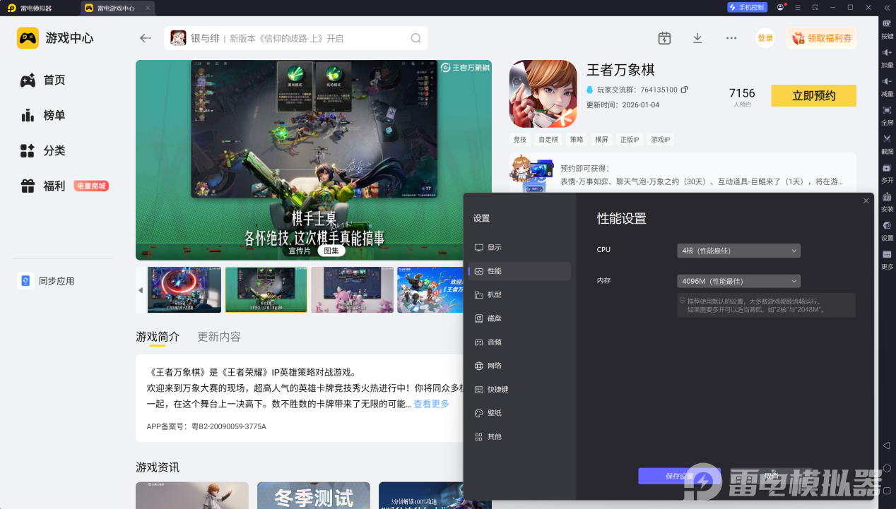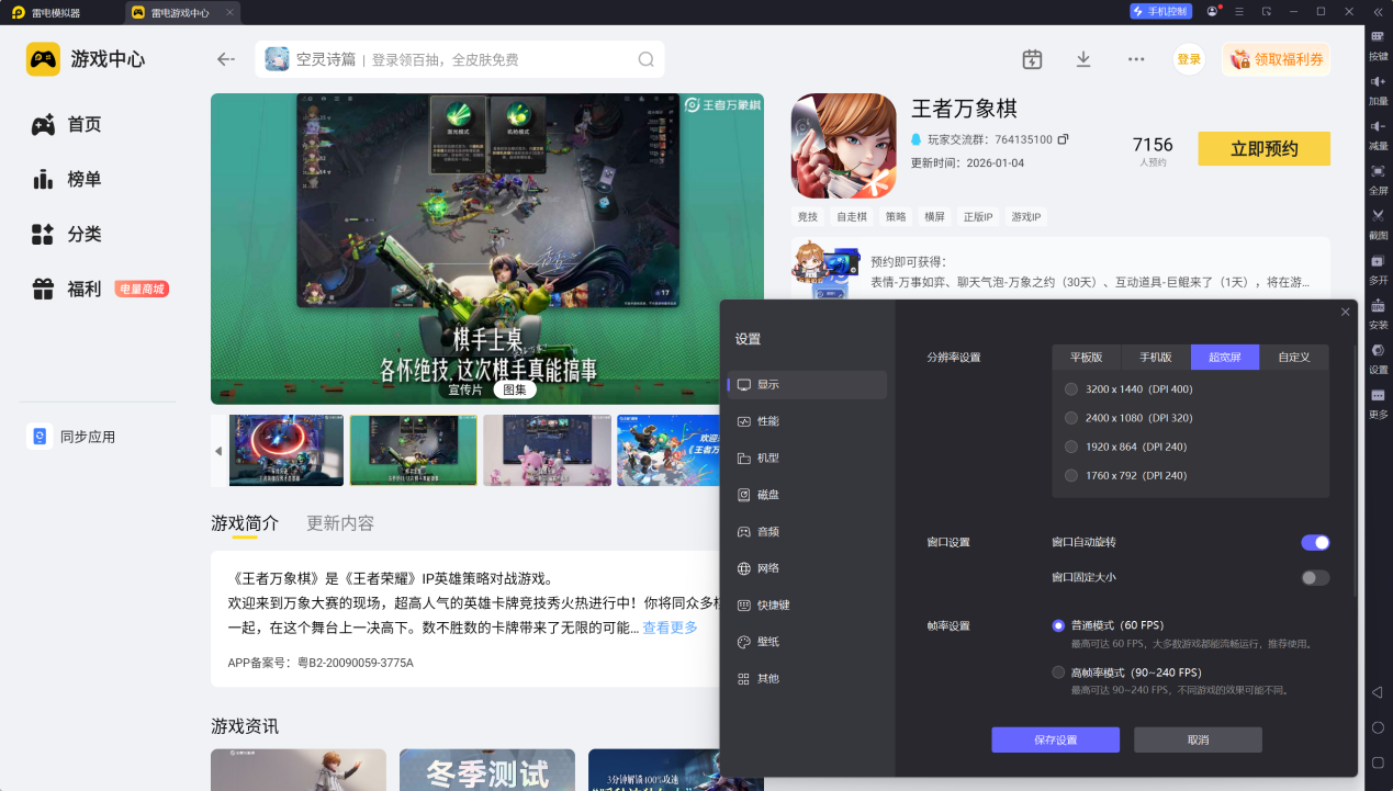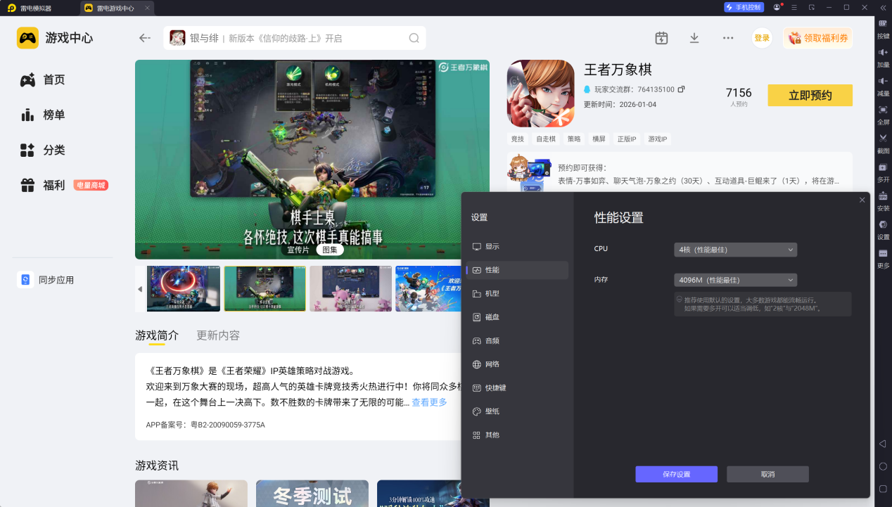 电脑硬件配置通常高于手机,雷电模拟器能为王者万象棋提供更稳定的运行环境,避免手机因发热、内存不足导致的卡顿、掉帧或闪退问题,确保游戏过程流畅。