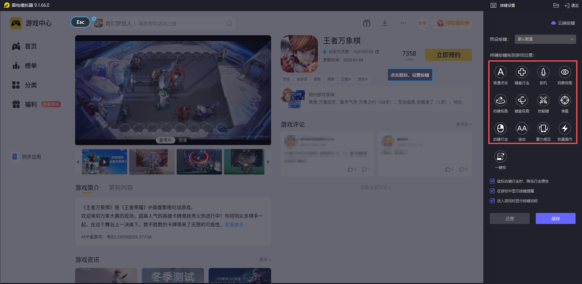 在策略博弈为核心的王者万象棋中,使用雷电模拟器能带来多维度的体验升级,让卡牌获取与阵容调度的策略优势得以充分发挥。