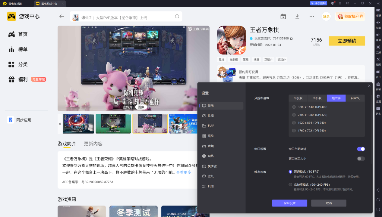 雷电模拟器可在电脑显示器上呈现更大的游戏画面,棋盘布局、棋子细节、技能特效等都能清晰展示,玩家能更轻松地观察全局局势,精准把握每个棋子的位置和状态,从而在策略制定和操作执行上更具优势,避免因手机屏幕过小而导致的视野局限和细节遗漏。
