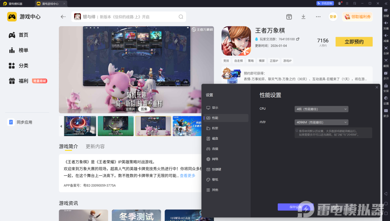 雷电模拟器能够为王者万象棋提供更稳定的运行环境,有效减少游戏过程中的卡顿、掉帧现象,确保游戏画面流畅运行。即使在游戏后期棋子数量增多、技能特效复杂的情况下,依然能保持较好的性能表现,让玩家专注于游戏策略本身,而不必担心设备性能带来的影响。
