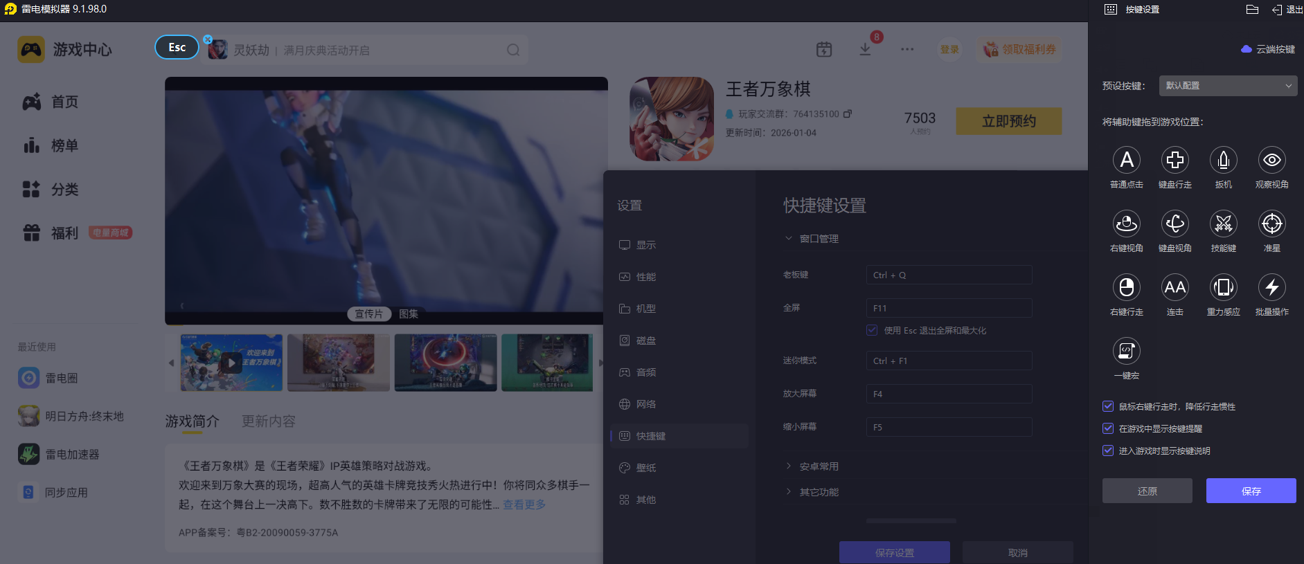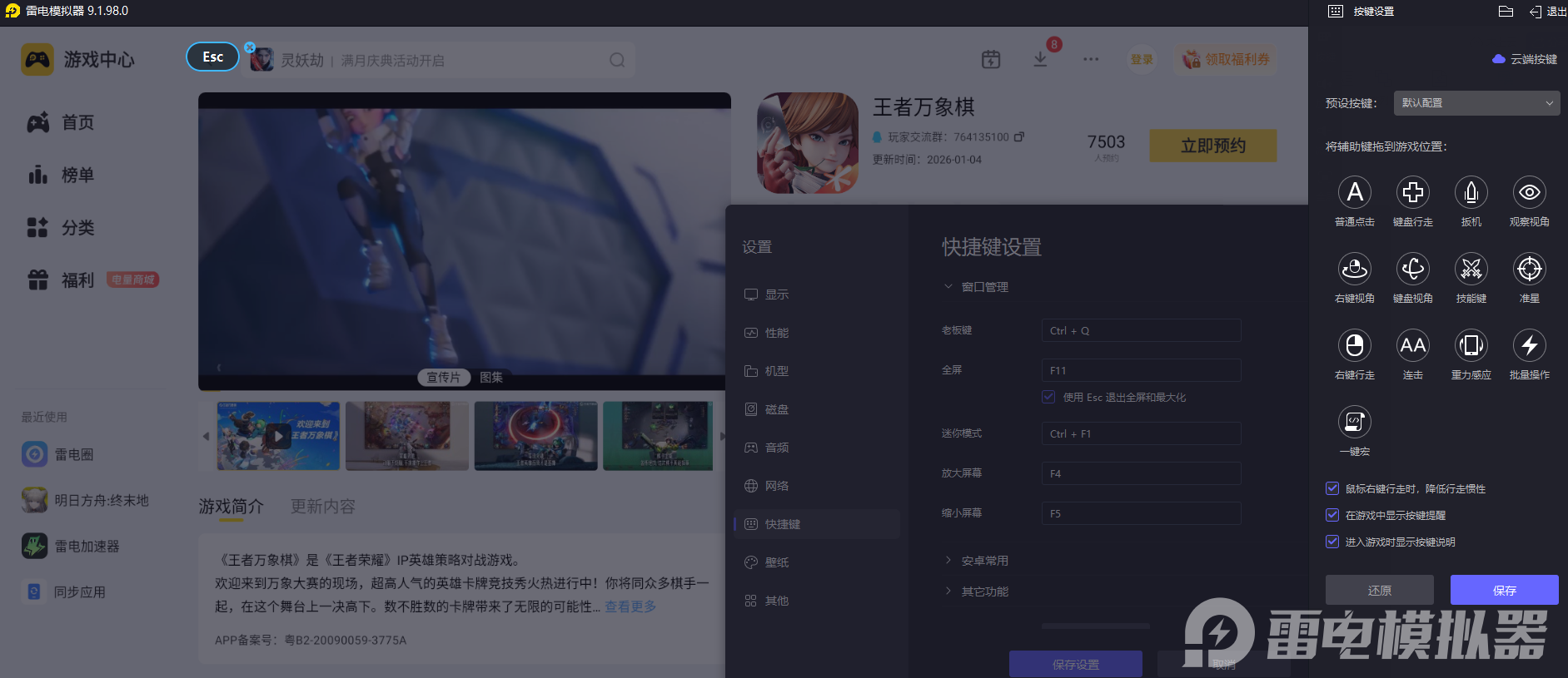 玩三分之地控场流时,需要频繁调整英雄站位来衔接控制链,雷电模拟器的键鼠操作比触屏更灵活。鼠标点击就能快速选中英雄、移动位置,键盘快捷键可设置技能释放和卡牌切换,面对瞬息万变的战局,能更快完成阵容调度,避免触屏误触导致控制断链,让刘禅的眩晕和大乔的技能衔接更流畅。