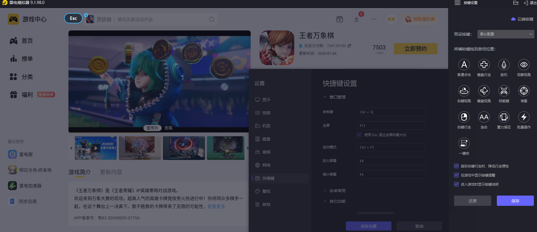 二、雷电模拟器玩王者万象棋:适配庄小鱼玩法
