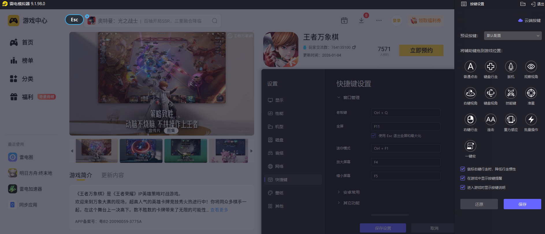 用雷电模拟器玩王者万象棋吕布,操作起来更顺手。通过键盘映射设置,能快速调整吕布的站位和大招释放时机,不用担心手机触屏误触。尤其是后期团战,需要快速调整阵容站位时,鼠标拖拽棋子比手机滑动更精准,能让吕布的全屏大招每次都命中更多敌人,轻松把控团战节奏。
