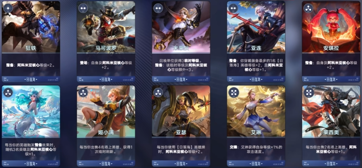 日落海羁绊的核心是“临时等级分配”,基础英雄为亚瑟、露娜,搭配周瑜、曹操可强化效果。上阵2名即可激活,开战时将核心英雄(如亚瑟)的等级临时共享给全队,让低等级英雄也能拥有高额基础属性;上阵4名时,额外获得群体加速词条,技能衔接更流畅。该羁绊机制简洁,成型快且输出稳定,核心可灵活切换为周瑜、曹操,适合新手快速上手,快节奏匹配中上分效率高。