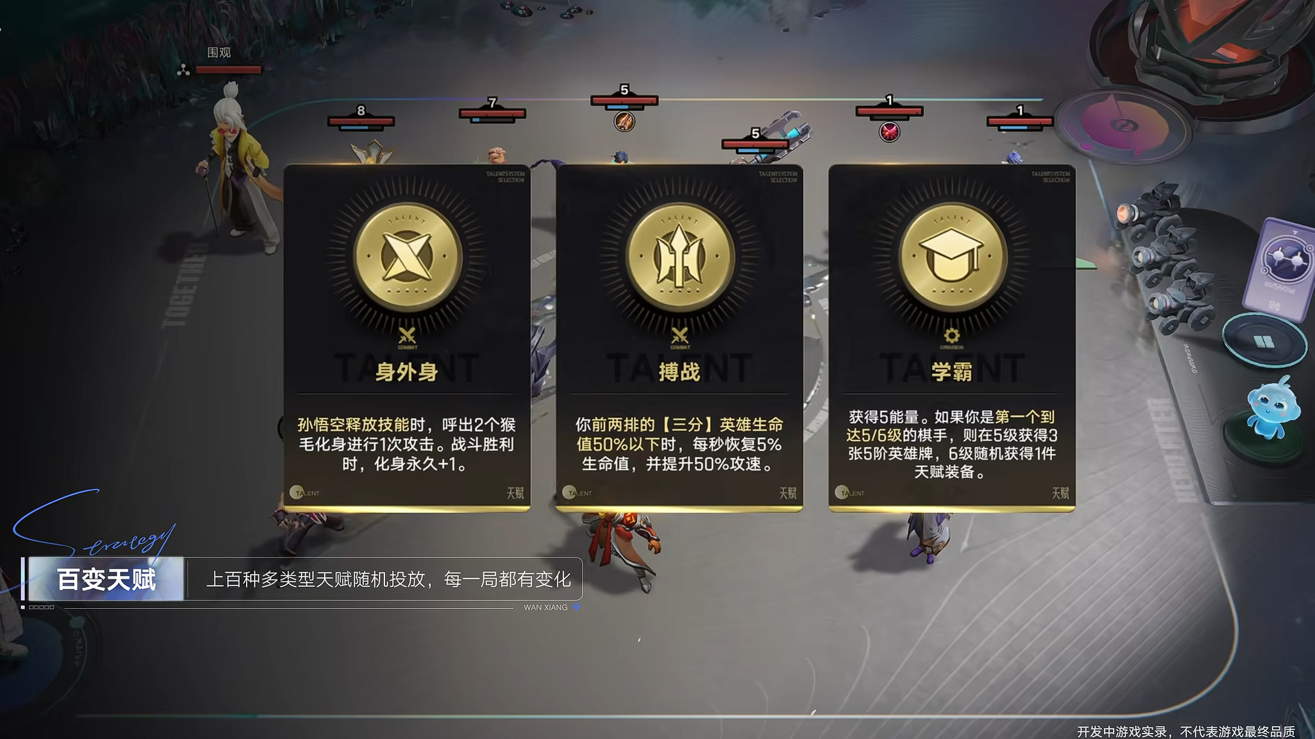 王者万象棋最吸引人的地方,就是没有固定的最优阵容,每一局的牌库、天赋和禁用阵营都不同,能否取得胜利全靠临场判断。熟悉的王者英雄以全新形态登场,棋手拥有专属技能,能直接改变对局节奏,低阶英雄也能通过升级逆袭成核心。