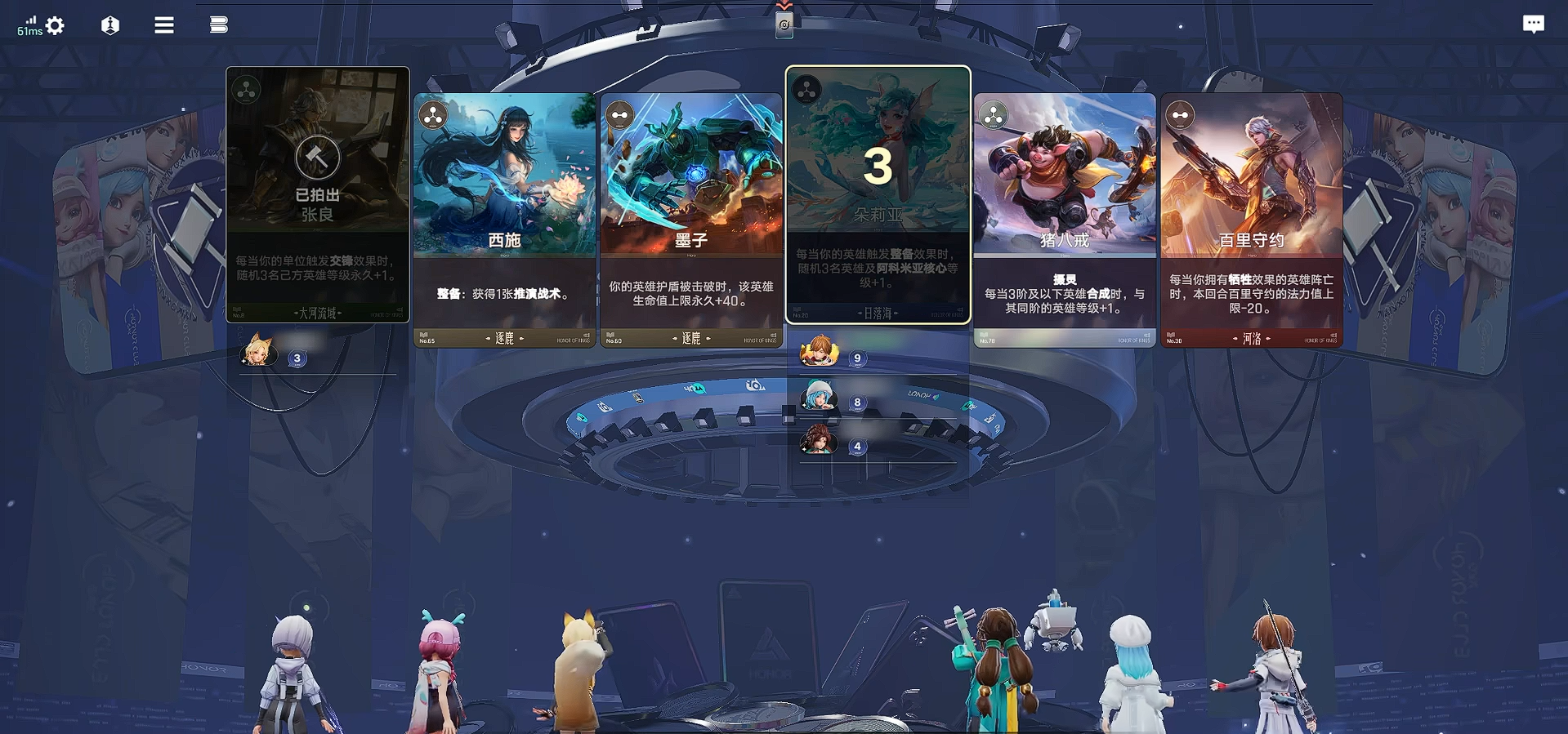 游戏玩法采用常规的自走棋玩法,英雄通过能量购买,而能量在每一回合都会增长,但可以通过英雄的购买实现理财,加快能量的存储,越多的能力可以购买更多的英雄卡片,足够多的英雄卡片可以合成更强的英雄,在每一回合的战斗中,战士敌人场上的所有英雄可减少对方玩家的血量,血量为0时退出对局,最后以排名形式公布游戏结果。最有意思的玩法是拍卖机制,玩家可以在落后时通过竞拍,直接获得想要的英雄角色,通过竞拍时的心理博弈,让别人损失能量点,也可以用更少的能量点获得想要的道具,实现最后游戏结果的翻盘,让每一步决策都可能影响结局,玩起来完全不枯燥。