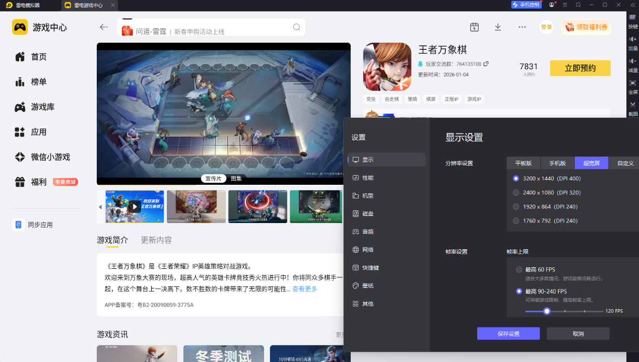 雷电模拟器性能表现出色,针对王者万象棋做了深度适配,能稳定运行,不会出现闪退、卡顿等问题,哪怕技能特效密集时,也能保持流畅帧率,彻底告别手机端游玩时的卡顿困扰。